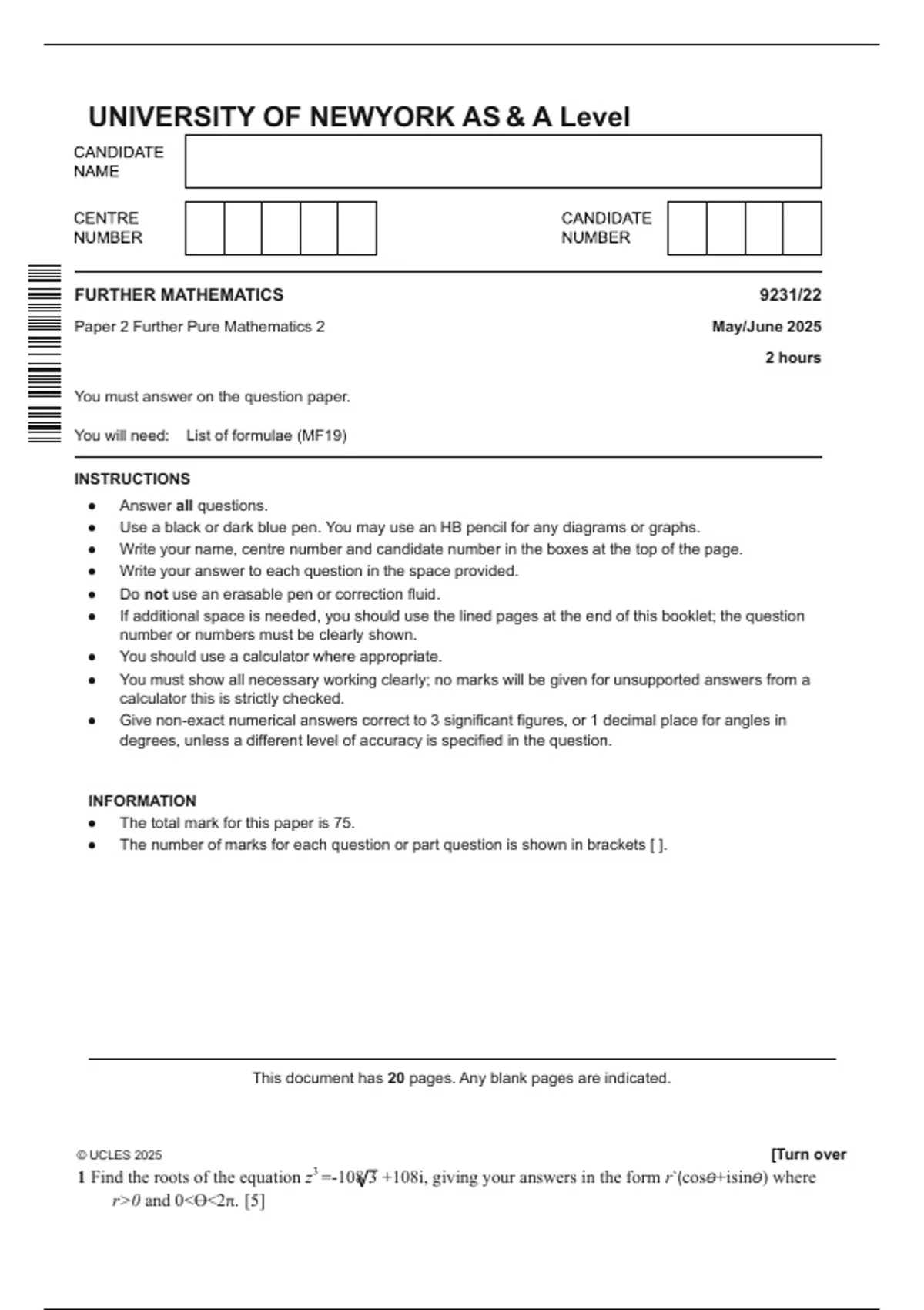 This document has 20 pages. Any blank pages are indicated.