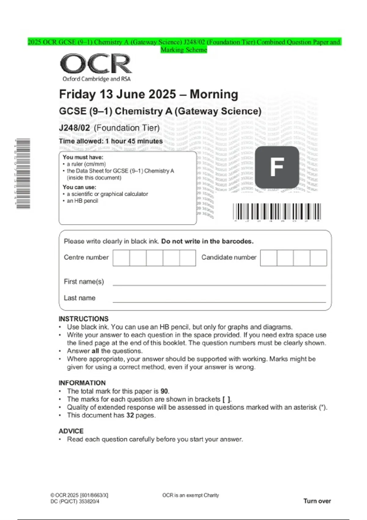 2025 OCR GCSE (9–1) Chemistry A (Gateway Science) J248/02 (Foundation Tier) Combined Question Paper and Marking Scheme