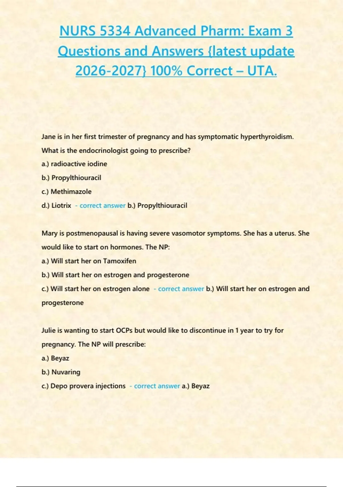 , NURS 5334 Advanced Pharm: Exam 3