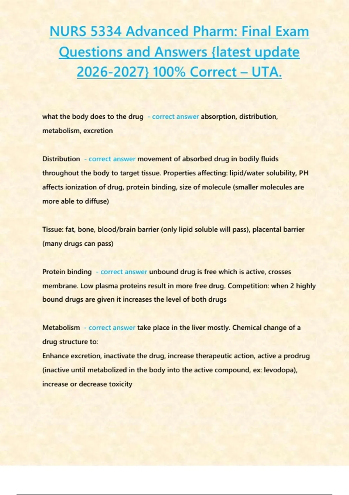 , NURS 5334 Advanced Pharm: Final Exam