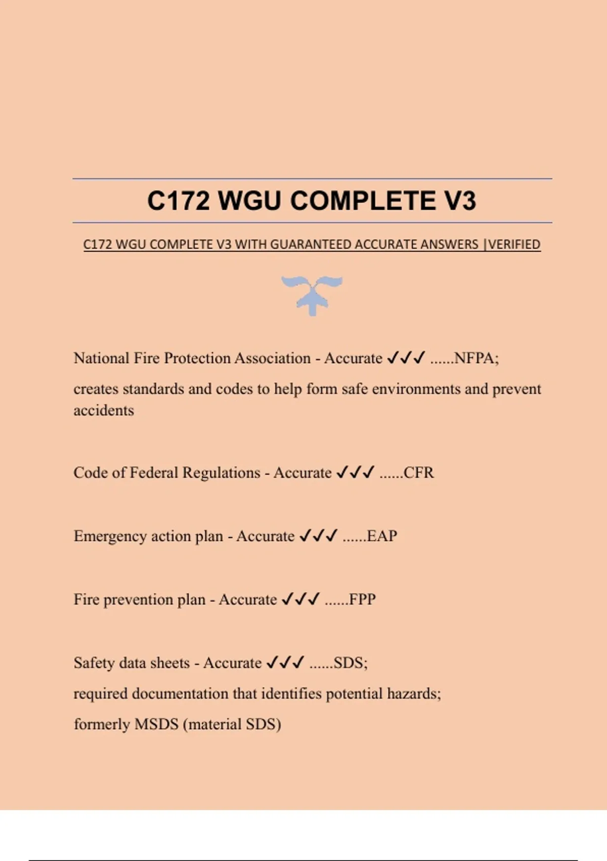 C172 WGU COMPLETE V3 WITH GUARANTEED ACCURATE ANSWERS |VERIFIED