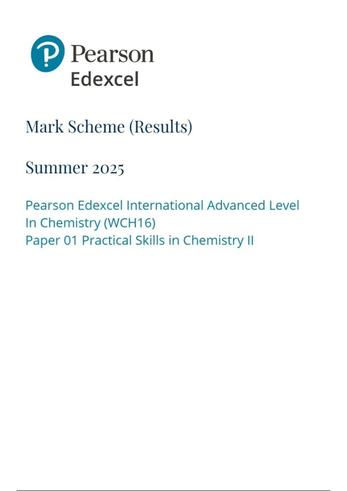 Pearson Edexcel International Advanced Level In Chemistry (WCH16) Paper 01 Practical Skills in Chemistry II mark scheme may 2025