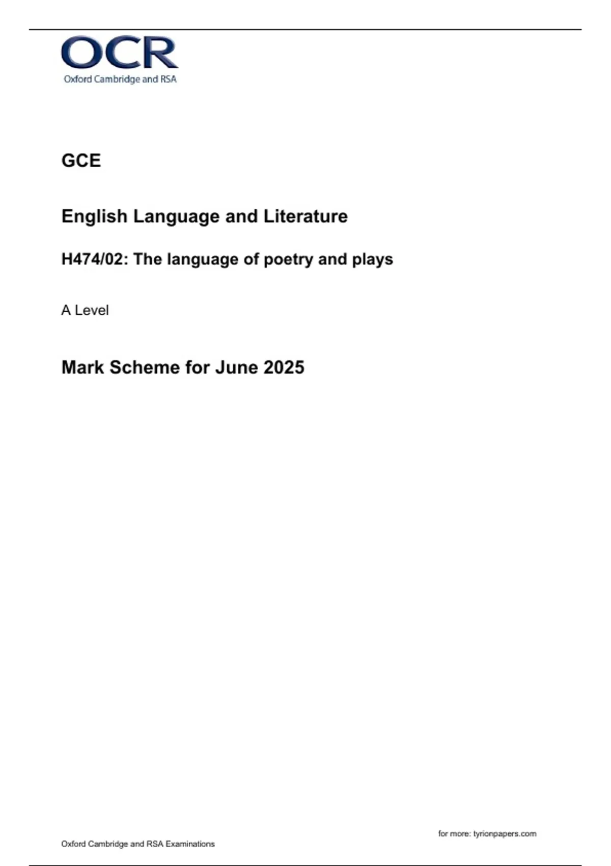 OCR A LEVEL 2025 ENGLISH LANGUAGE & LITERATURE Paper 2 MS + free study guide at end