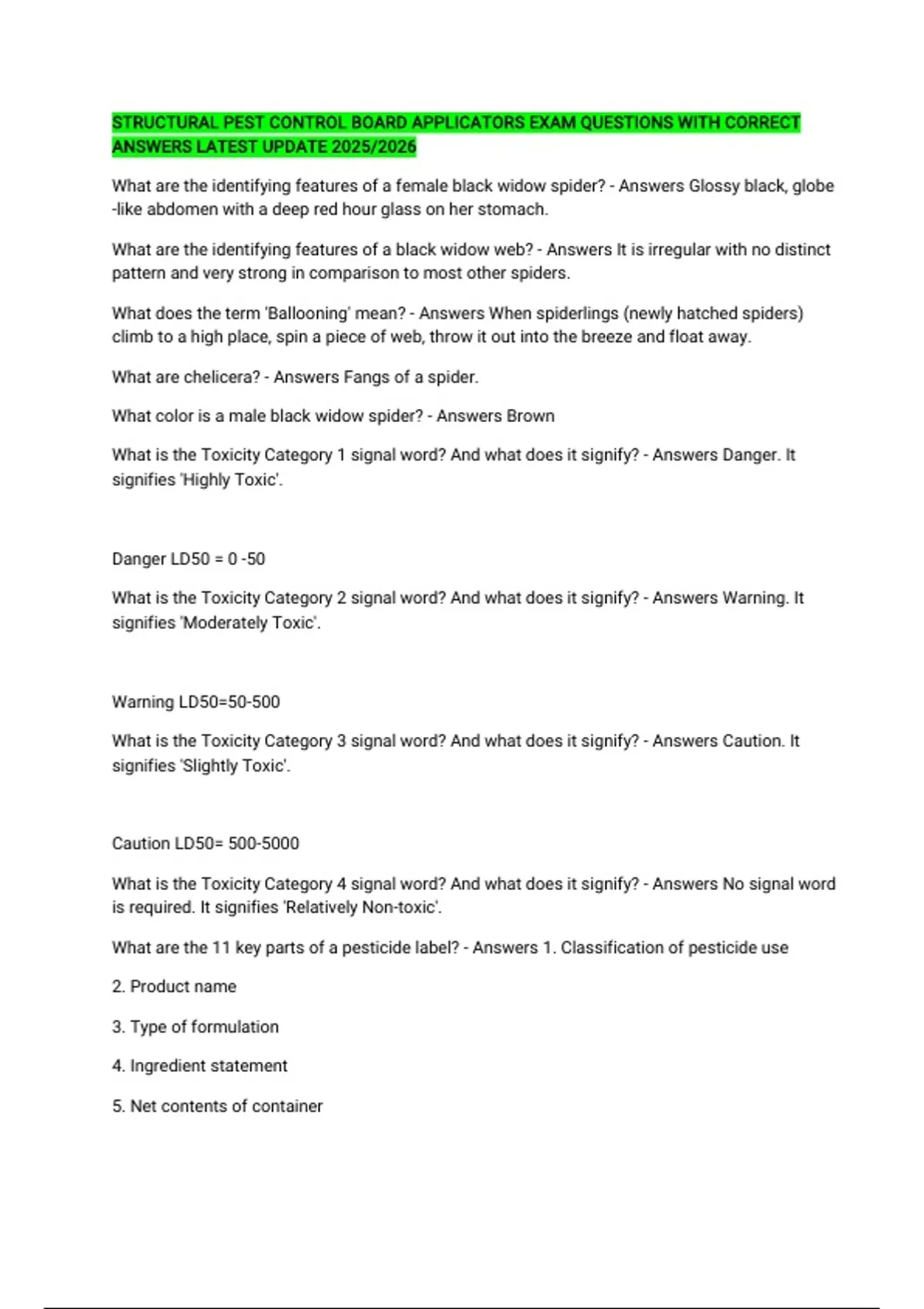 What are the 11 key parts of a pesticide label? - Answers 1. Classification of pesticide use