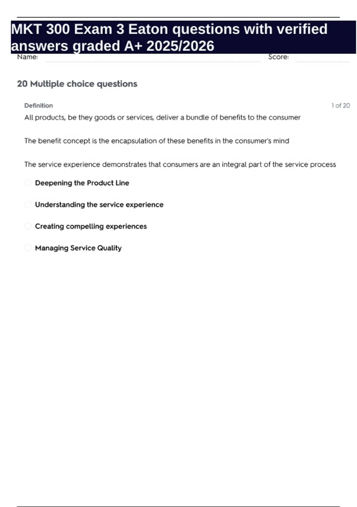 MKT 300 Exam 3 Eaton questions with verified answers graded A+ 2025/2026