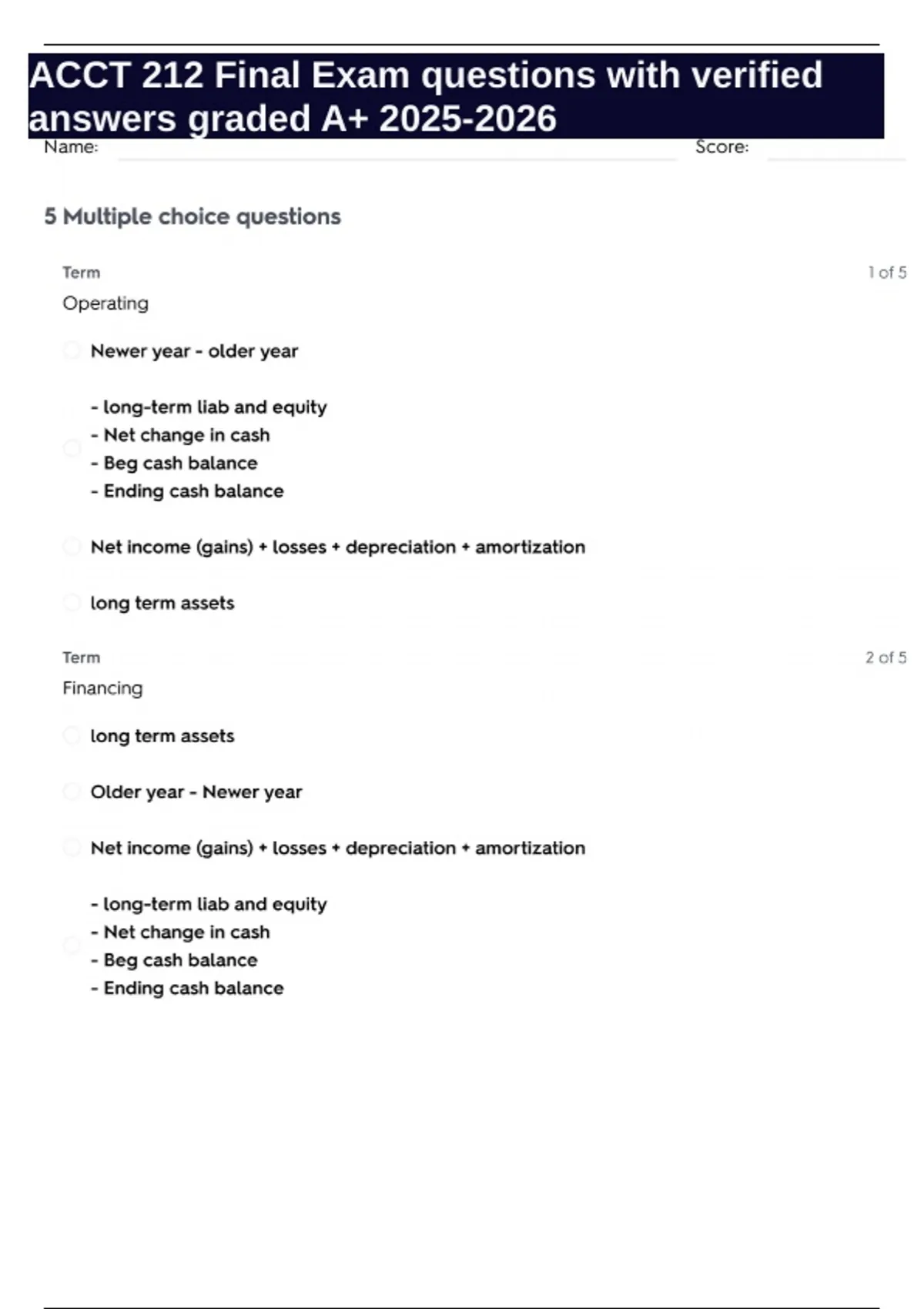 acct 212 final exam questions with verified answer