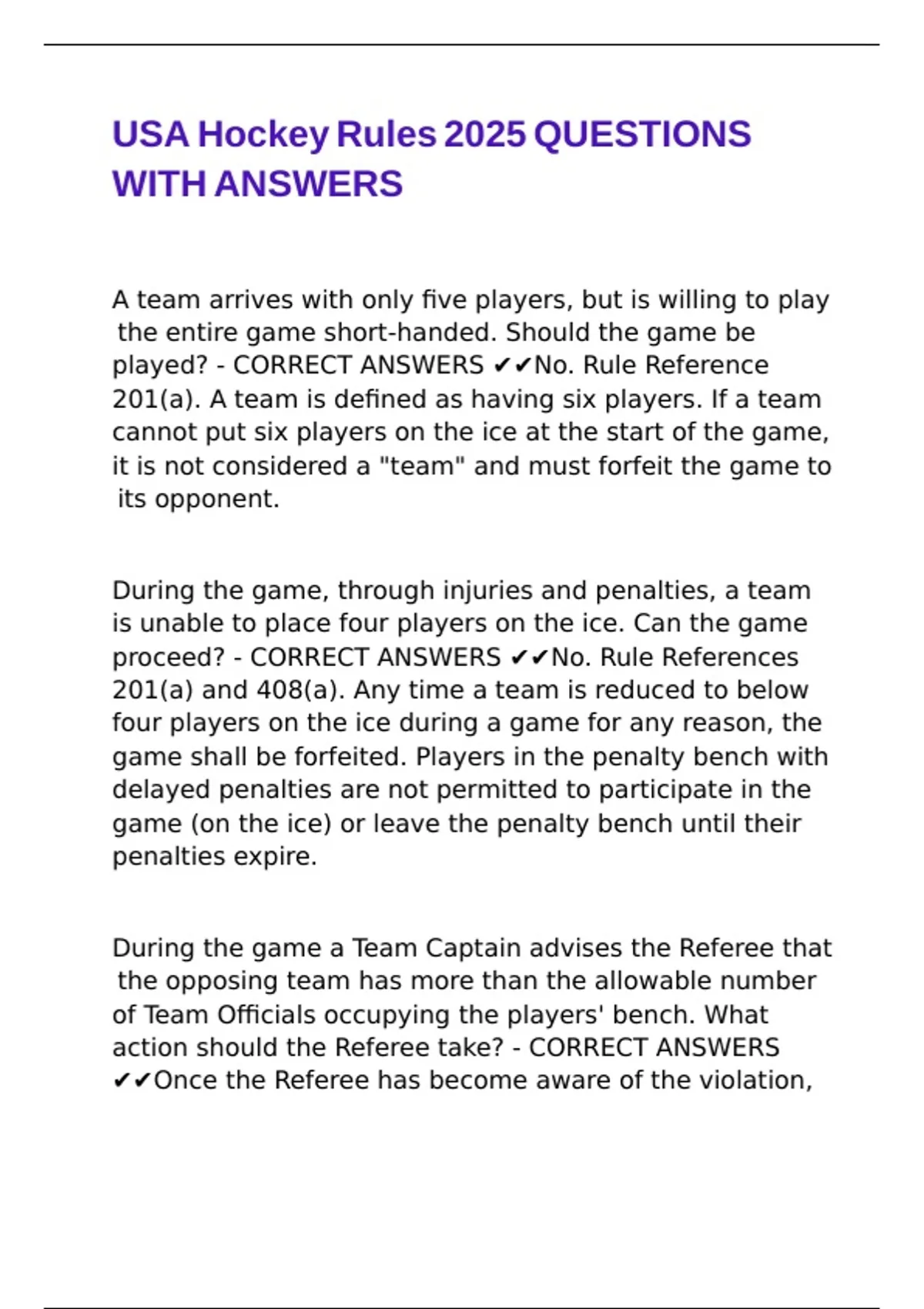 USA Hockey Rules 2025 QUESTIONS WITH ANSWERS