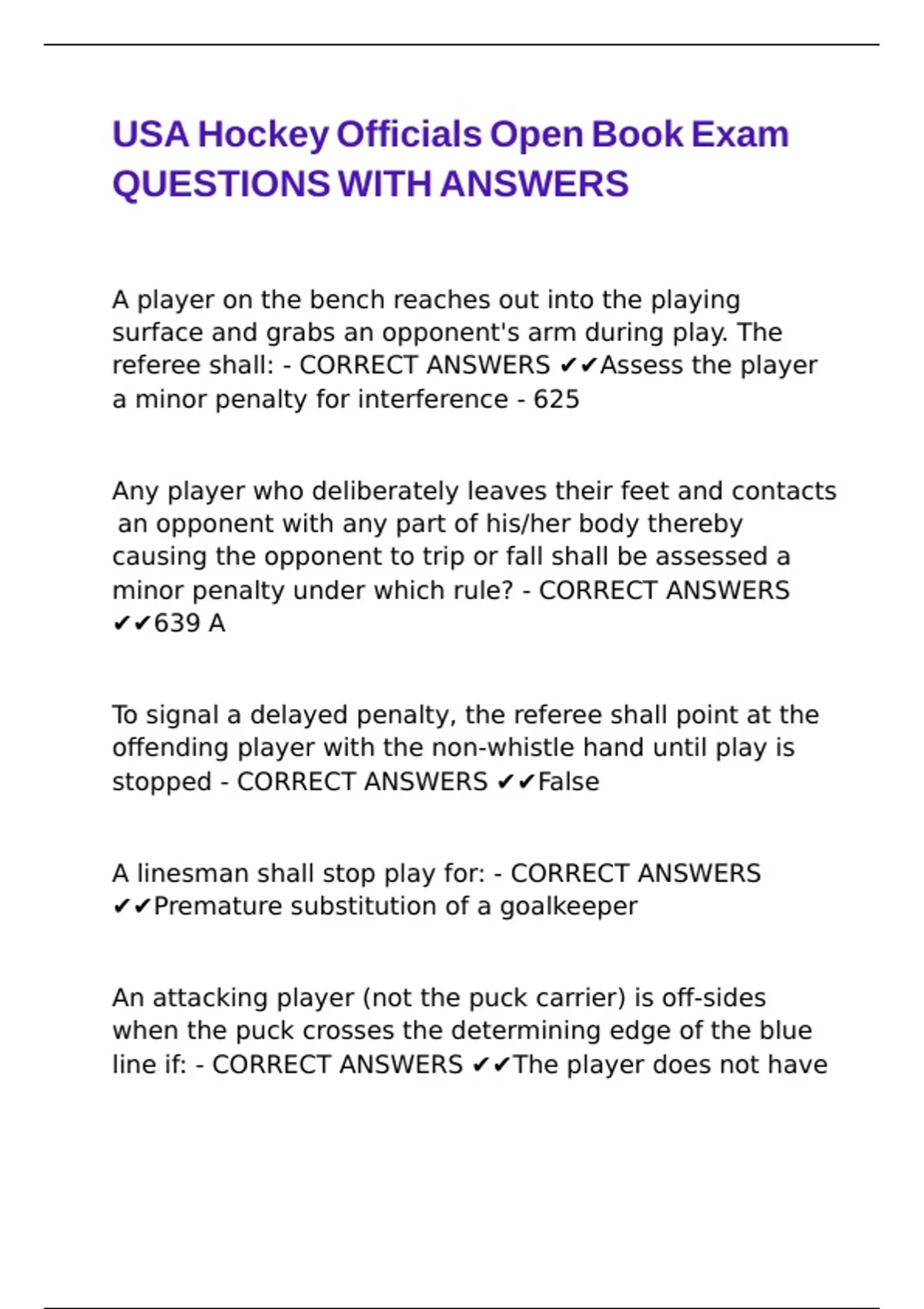 USA Hockey Officials Open Book Exam QUESTIONS WITH ANSWERS