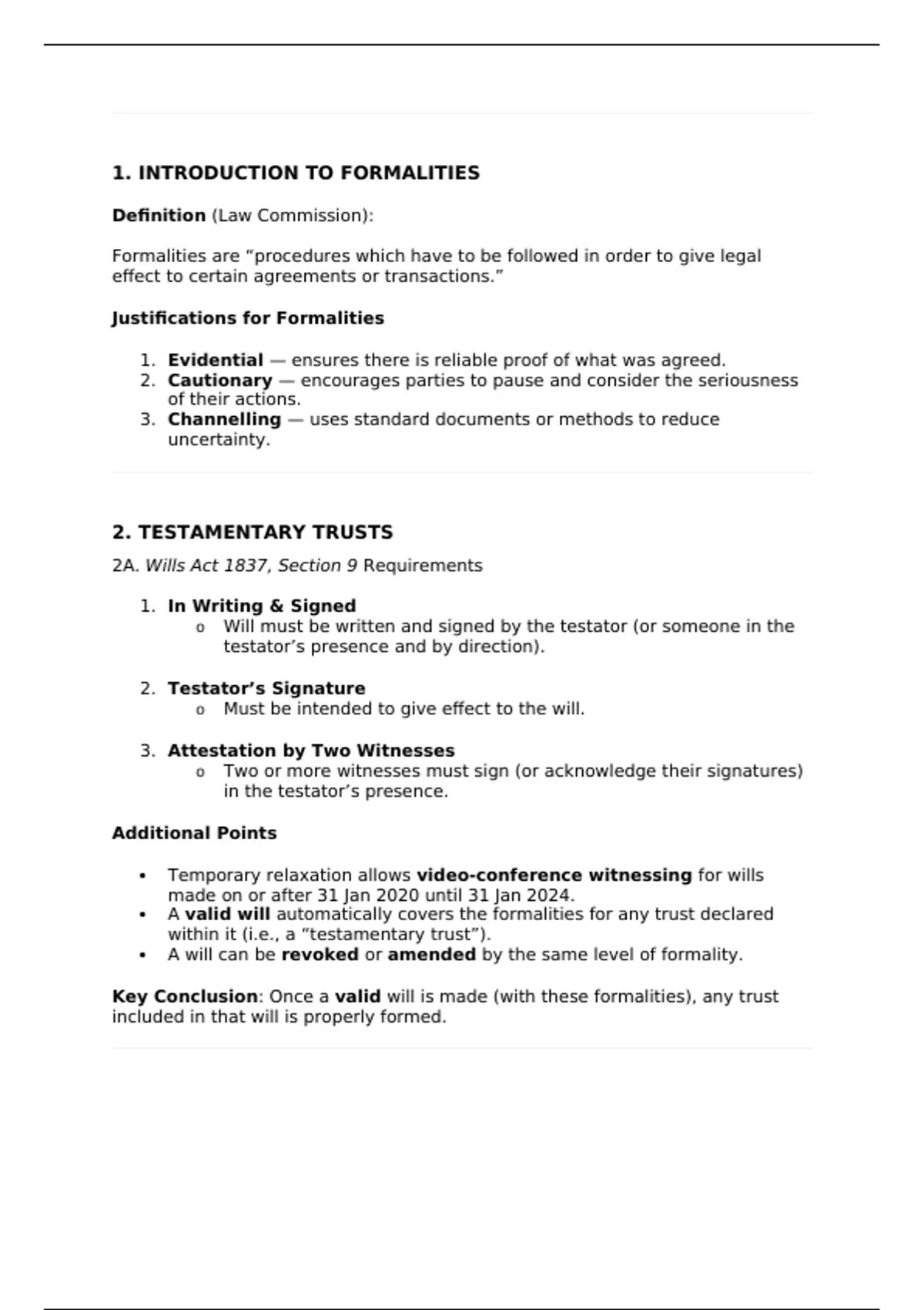 Key Conclusion: Once a valid will is made (with these formalities), any trust