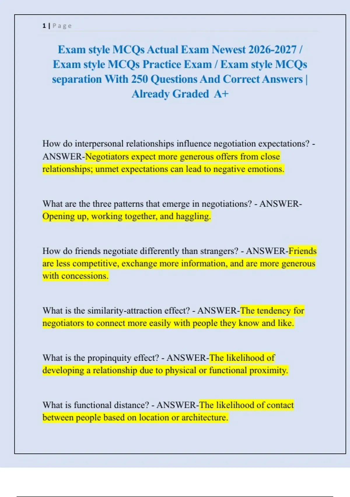 Exam style MCQs Actual Exam Newest 2026-2027 /
