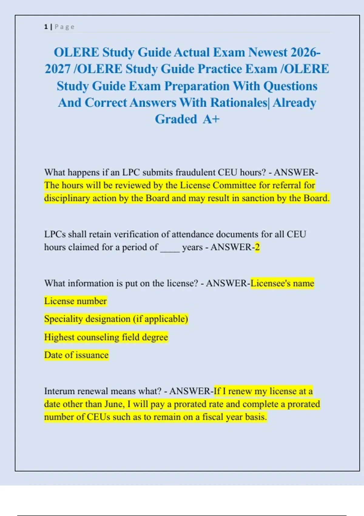 2027 /OLERE Study Guide Practice Exam /OLERE