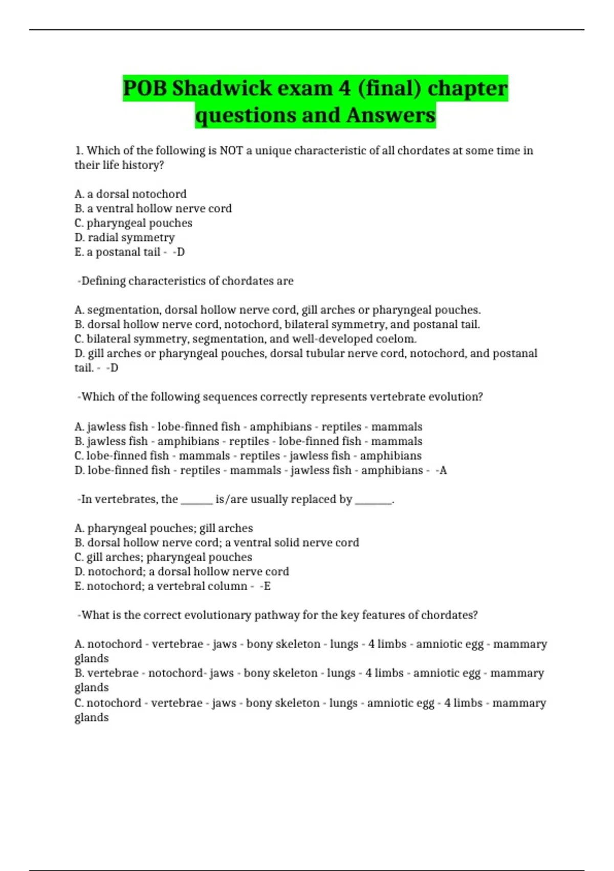POB Shadwick exam 4 (final) chapter questions and Answers