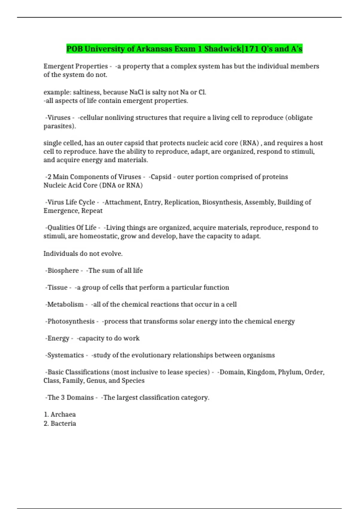 POB University of Arkansas Exam 1 Shadwick|171 Q’s and A’s