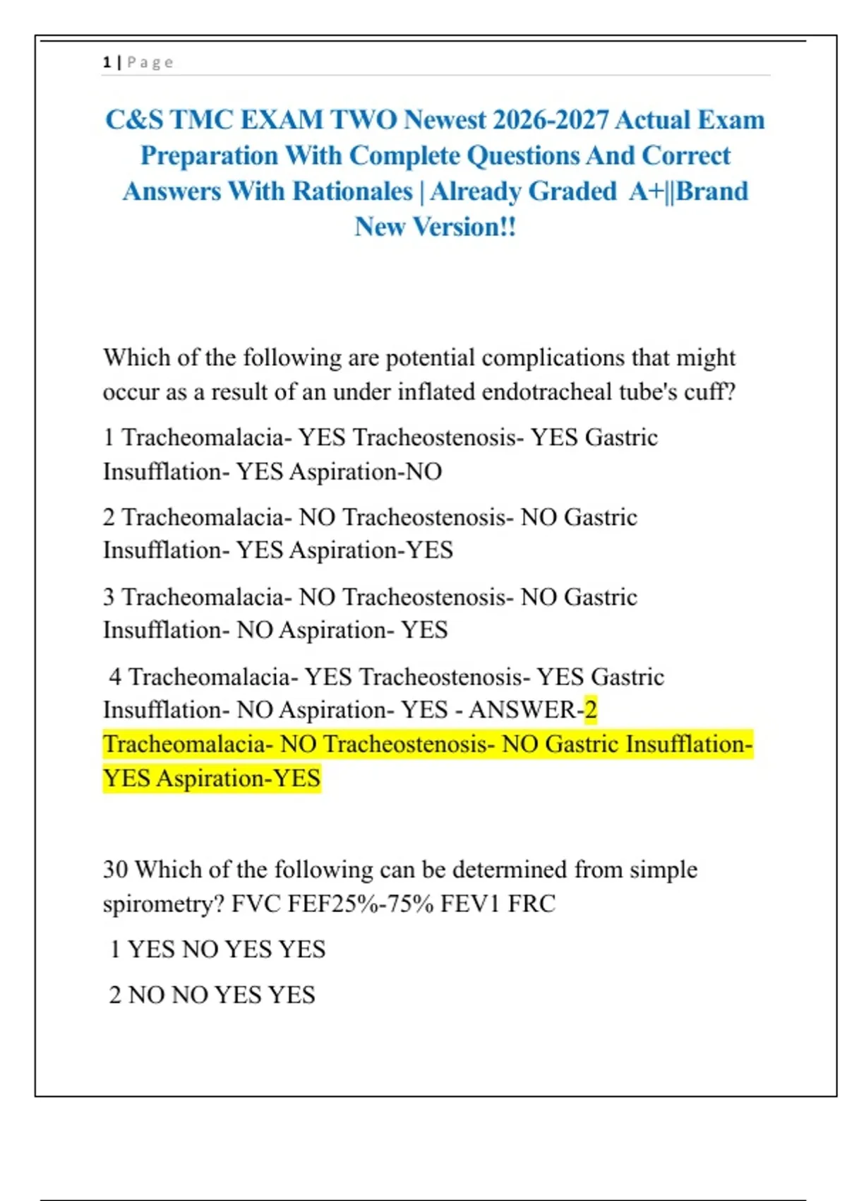 C&S TMC EXAM TWO Newest 2026-2027 Actual Exam