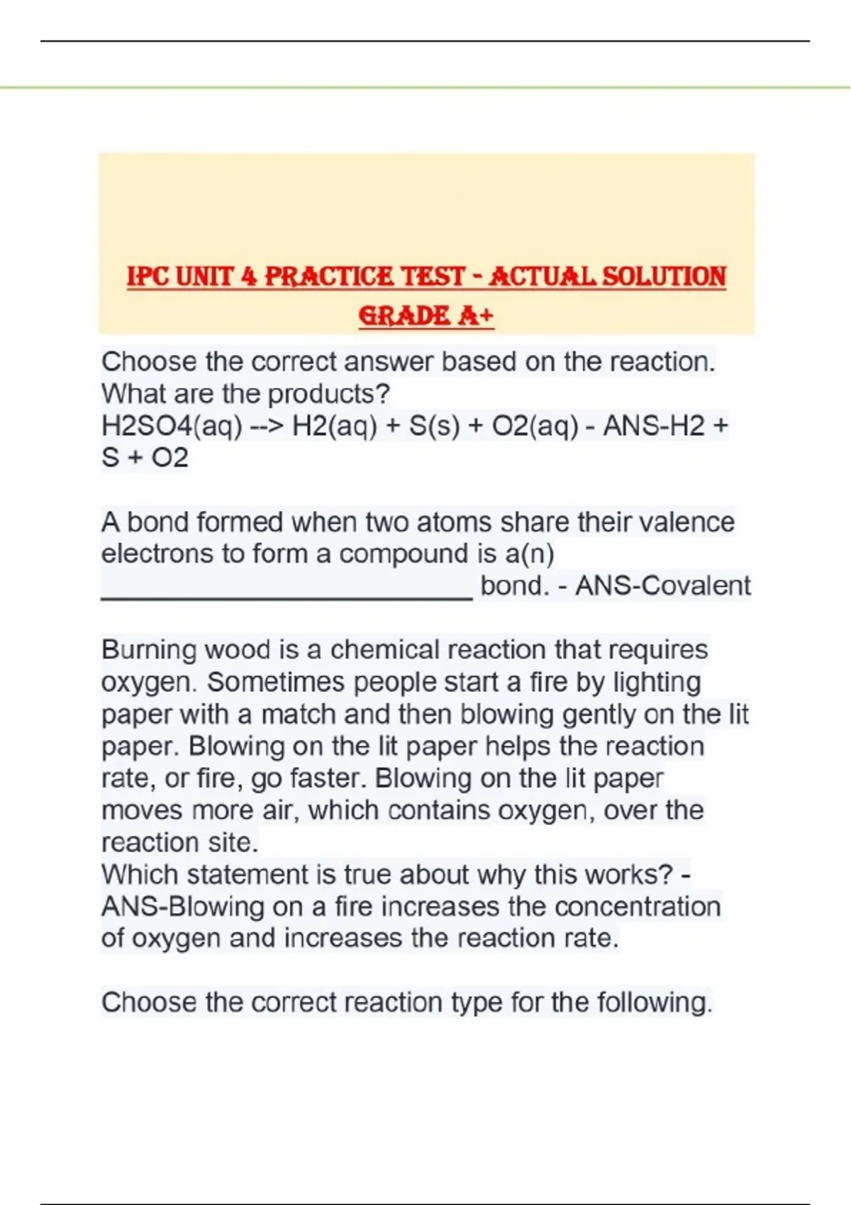 IPC Unit 4 Practice Test - ACTUAL SOLUTION GRADE A+