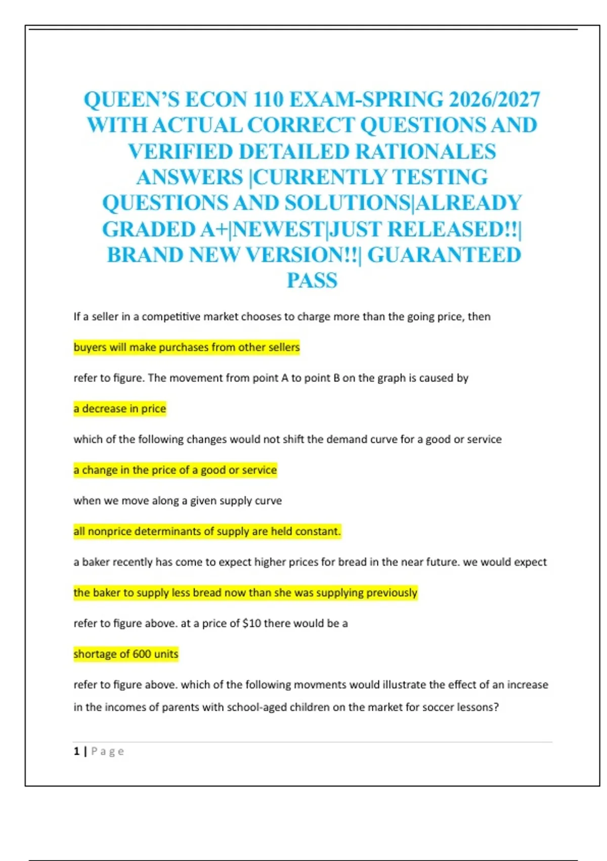 QUEEN’S ECON 110 EXAM-SPRING 2026/2027 WITH ACTUAL CORRECT QUESTIONS AND VERIFIED DETAILED RATIONALES ANSWERS |CURRENTLY TESTING QUESTIONS AND SOLUTIONS|ALREADY GRADED A+|NEWEST|JUST RELEASED!!| BRAND NEW VERSION!!| GUARANTEED PASS