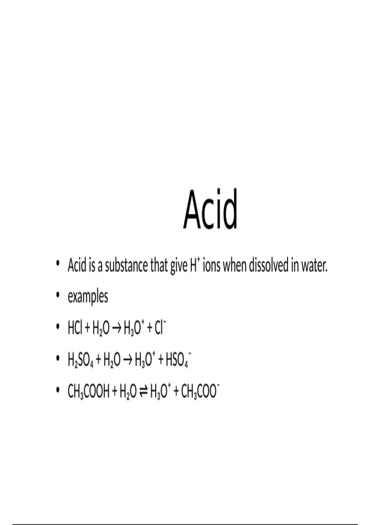• Acid is a substance that give H⁺ ions when dissolved in water.
