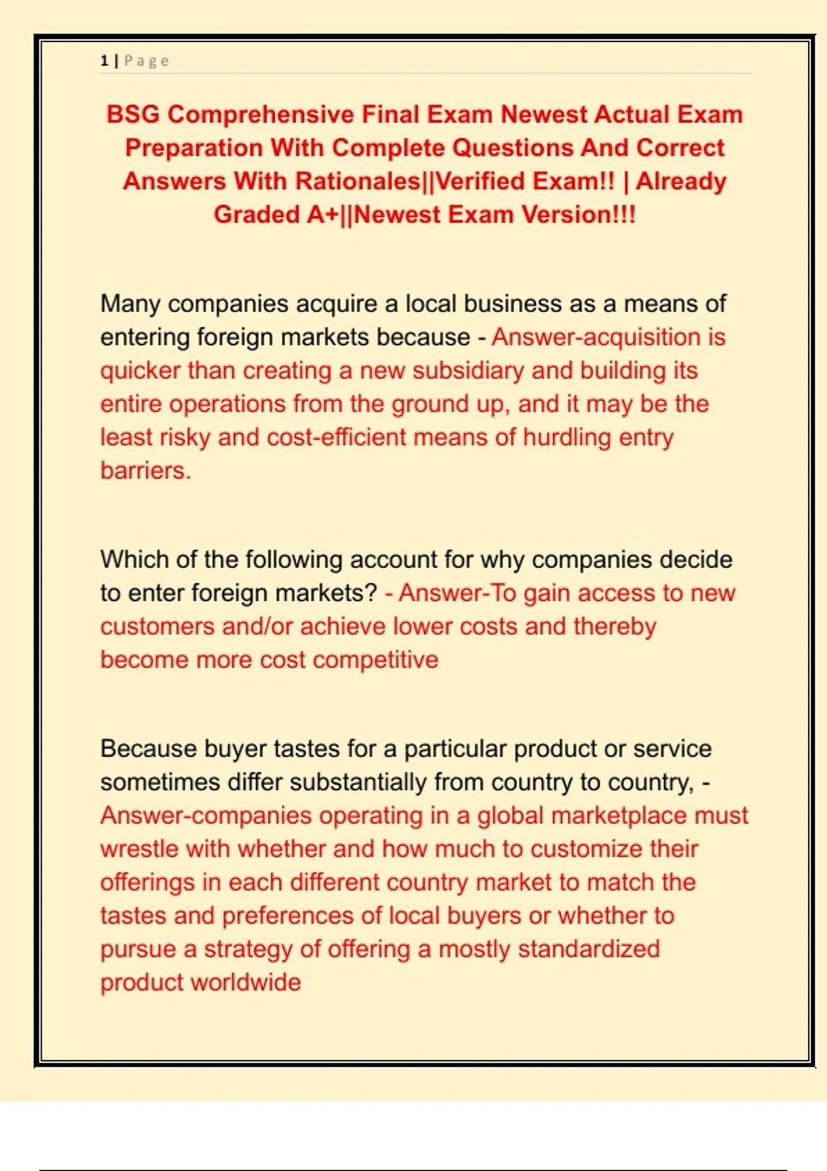 BSG Comprehensive Final Exam Newest Actual Exam