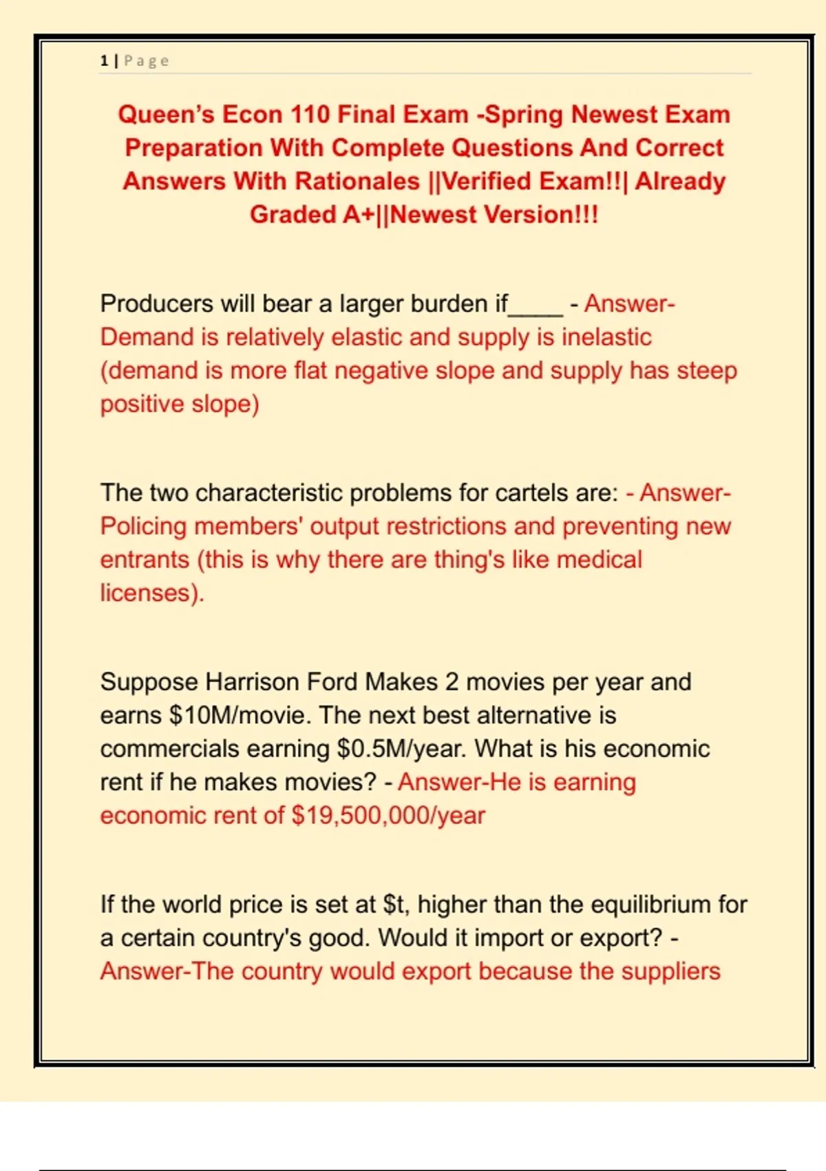 Queen’s Econ 110 Final Exam -Spring Newest Exam