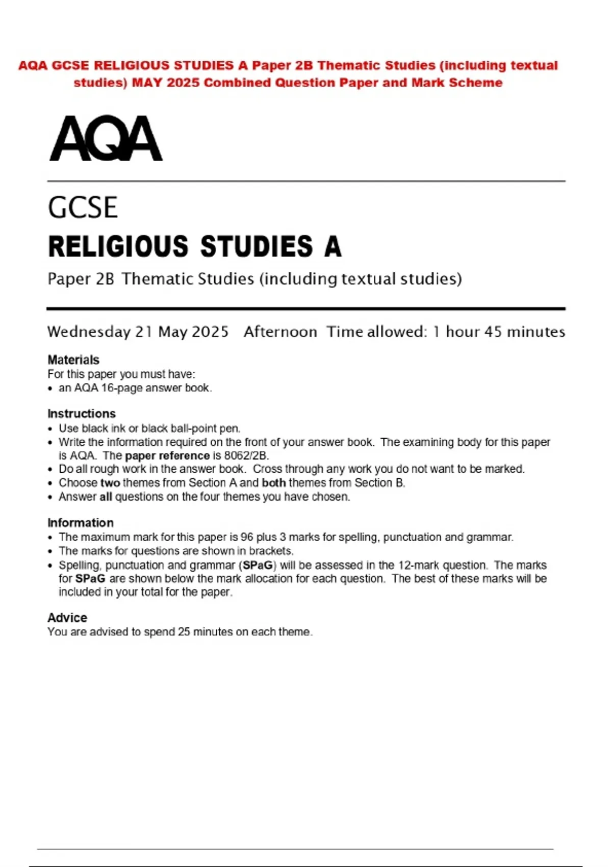 AQA GCSE RELIGIOUS STUDIES A Paper 2B Thematic Studies (including textual studies) MAY 2025 Combined Question Paper and Mark Scheme
