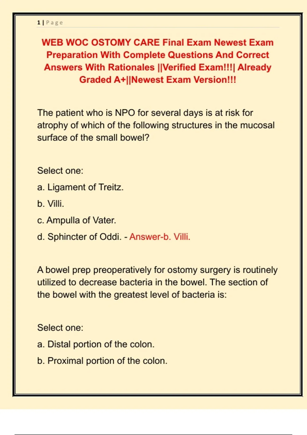 WEB WOC OSTOMY CARE Final Exam Newest Exam Preparation With Complete Questions And Correct Answers With Rationales ||Verified Exam!!!| Already Graded A+||Newest Exam Version!!!