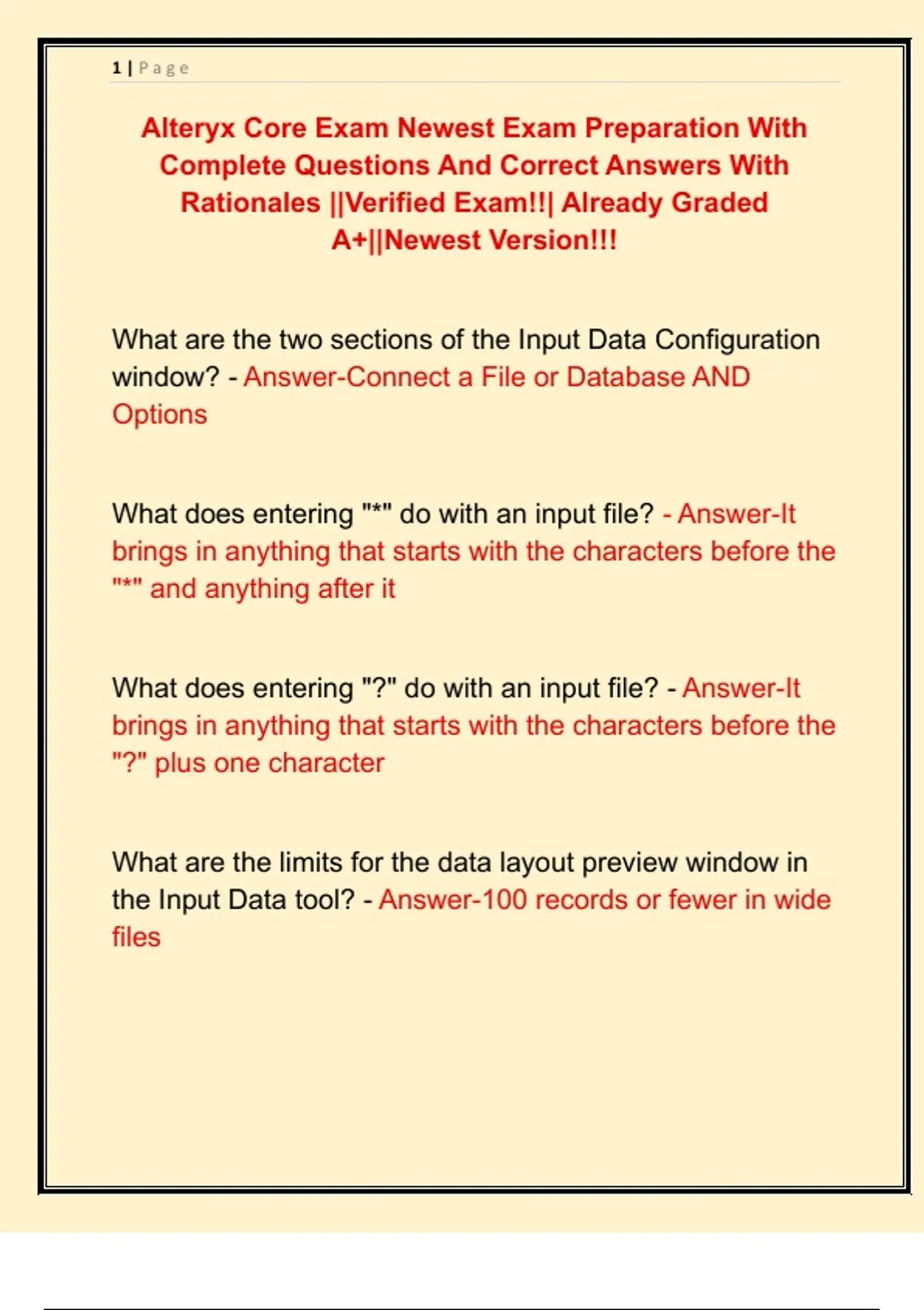 Alteryx Core Exam Newest Exam Preparation With