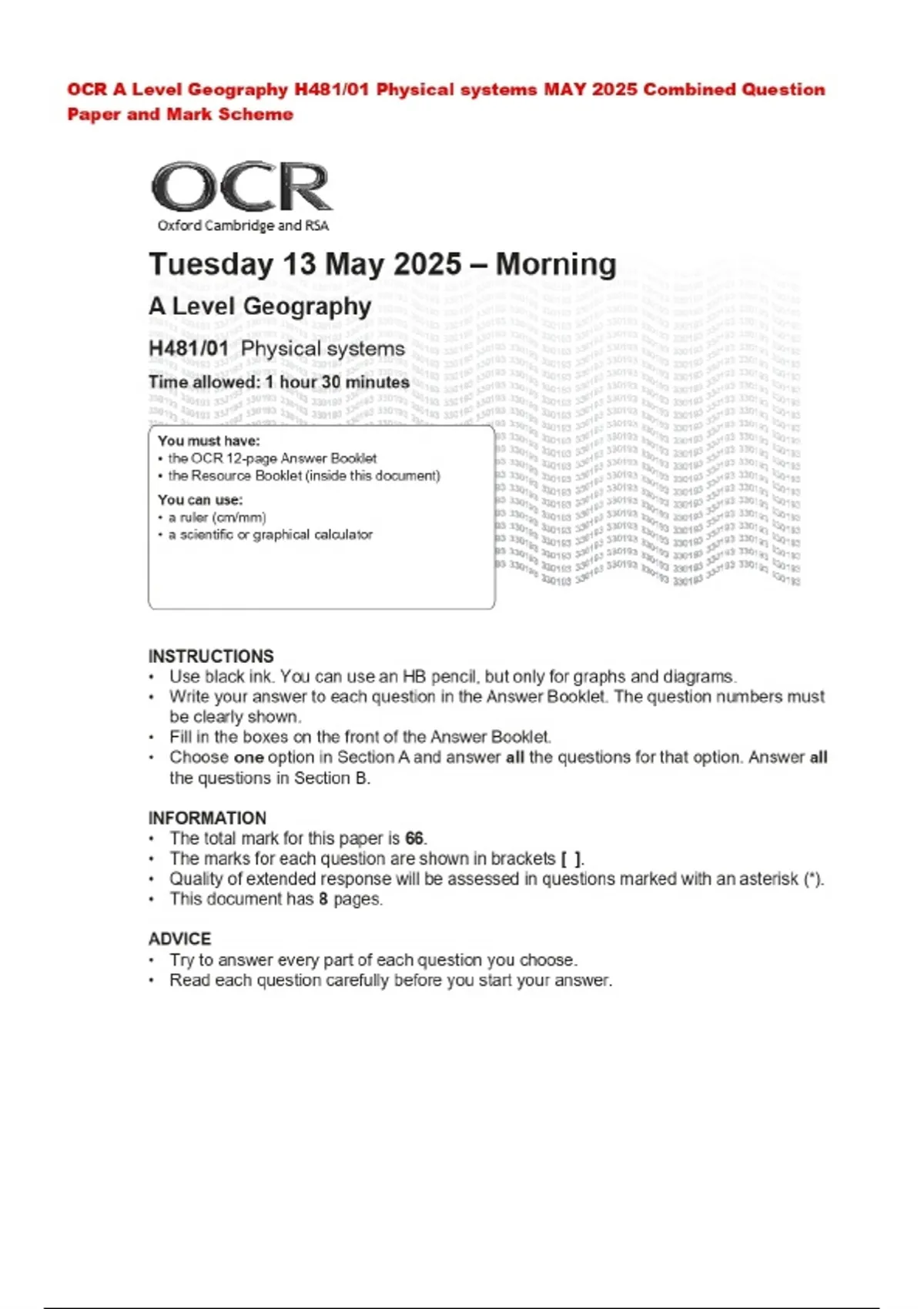 BUNDLE::: OCR AS Level Geography 2025 Combined Question Paper and Mark Scheme