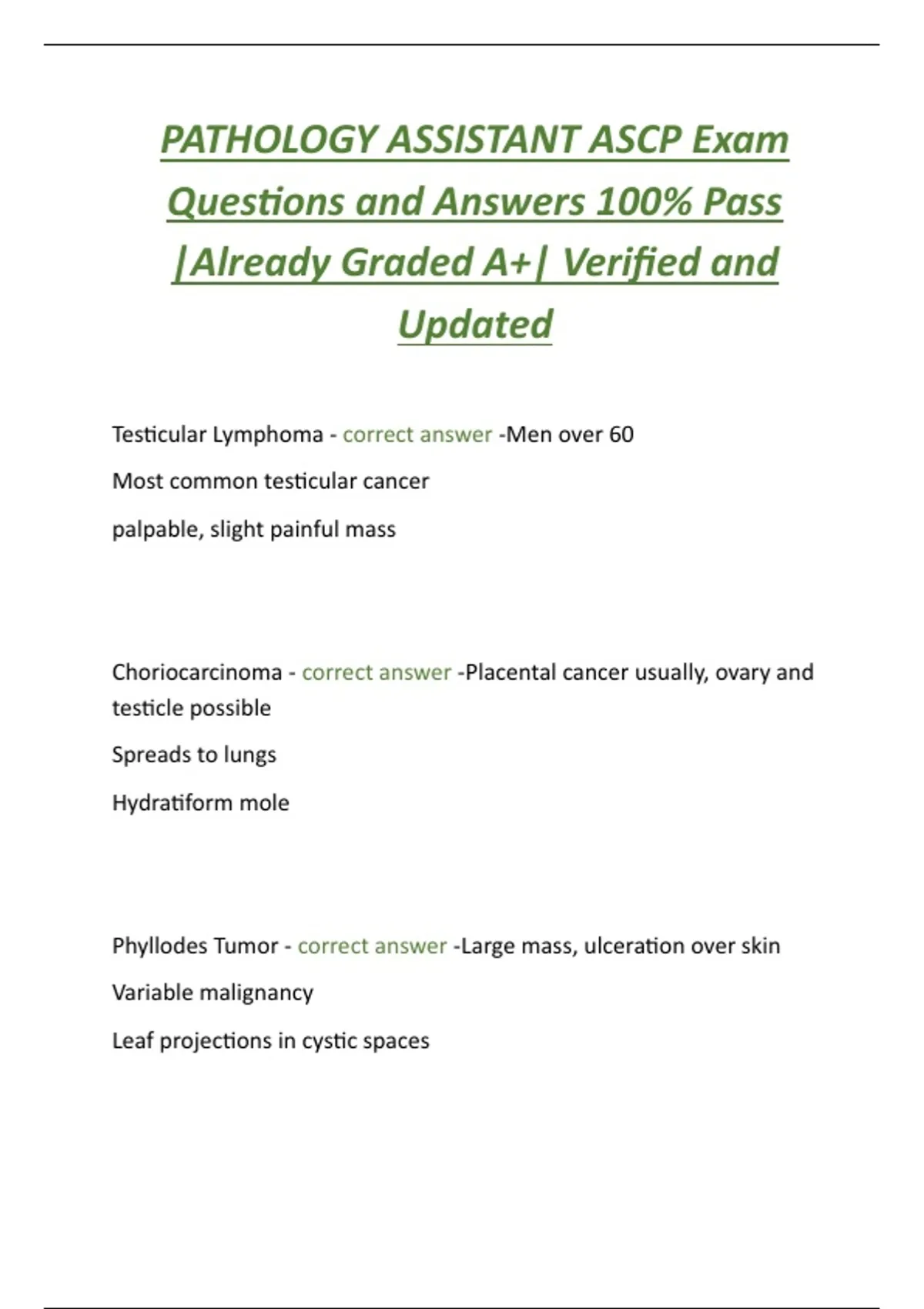 Choriocarcinoma - correct answer -Placental cancer usually, ovary and