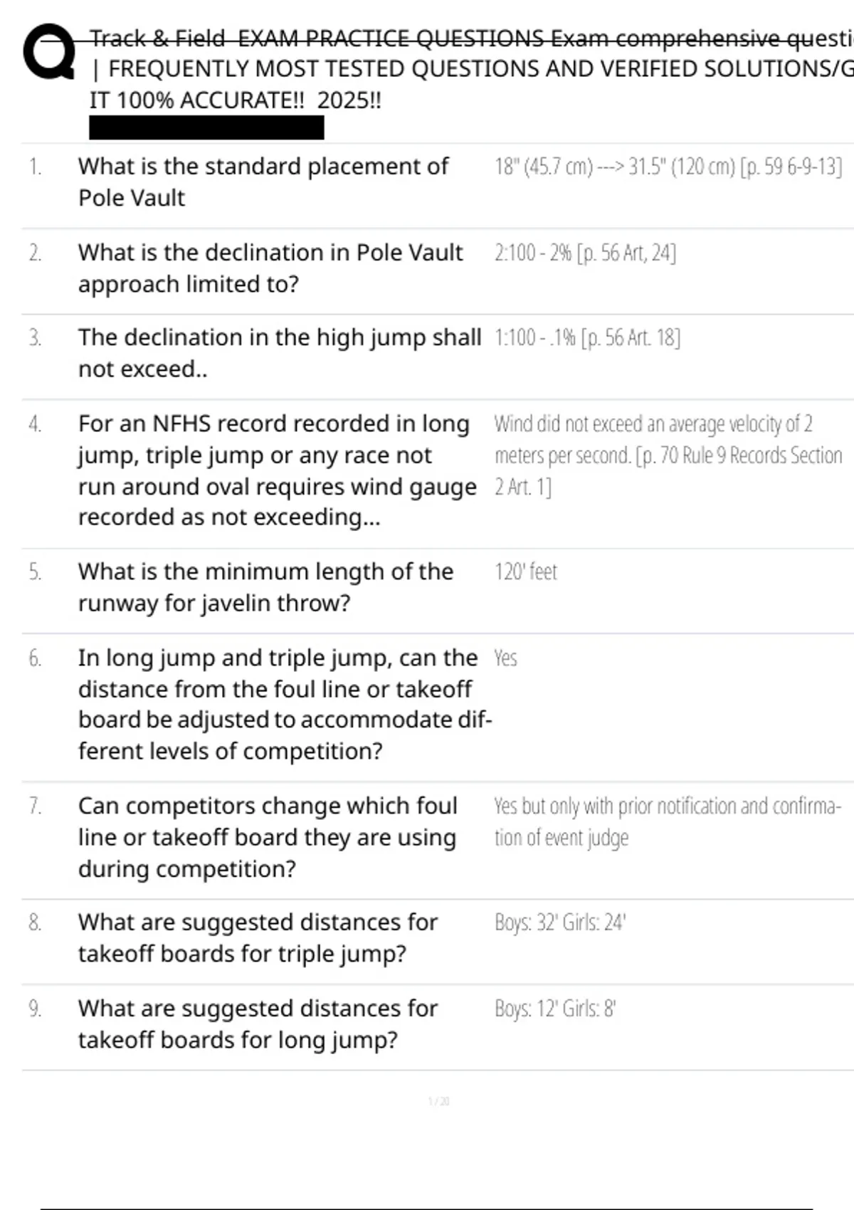 , Track & Field EXAM PRACTICE QUESTIONS Exam comprehensive questio