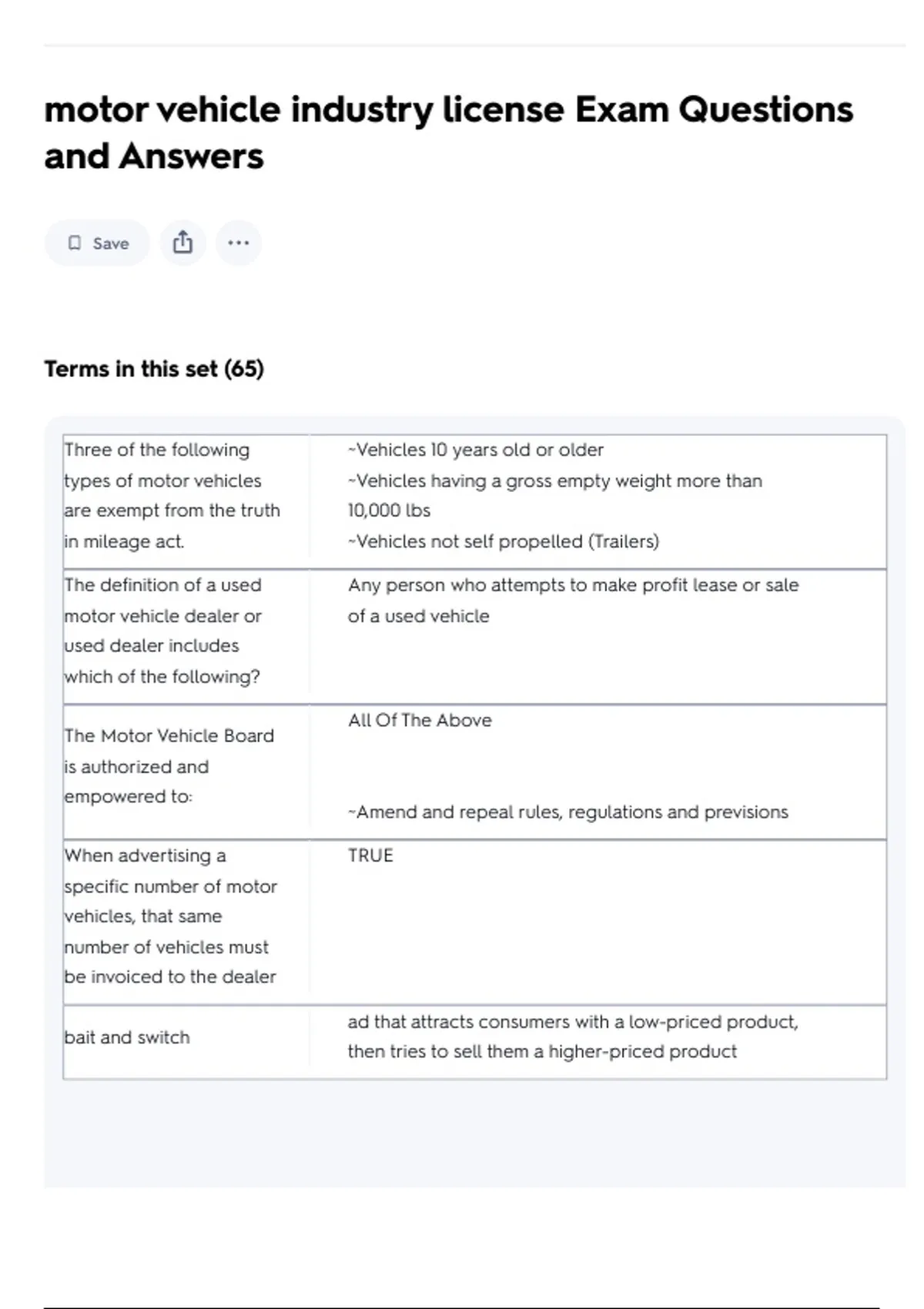motor vehicle industry license Exam Questions
