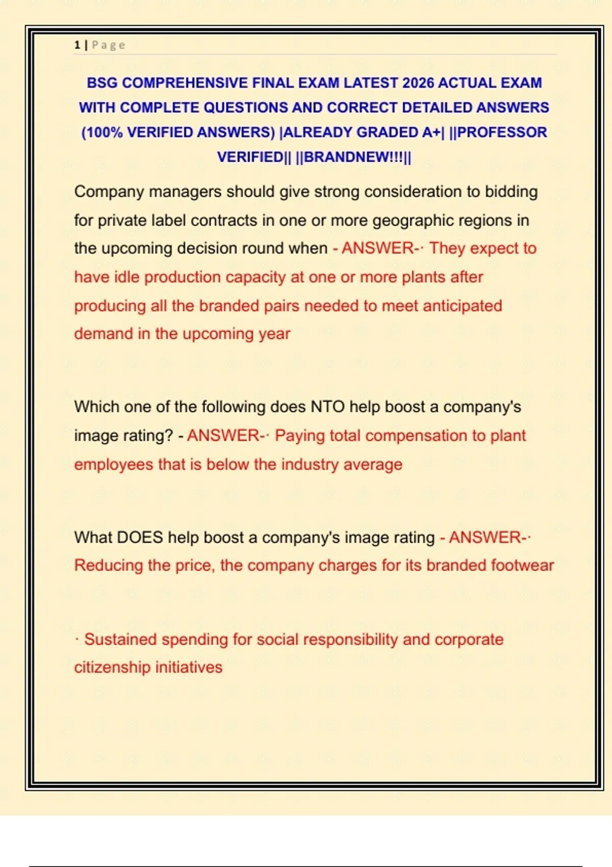 BSG COMPREHENSIVE FINAL EXAM LATEST 2026 ACTUAL EXAM