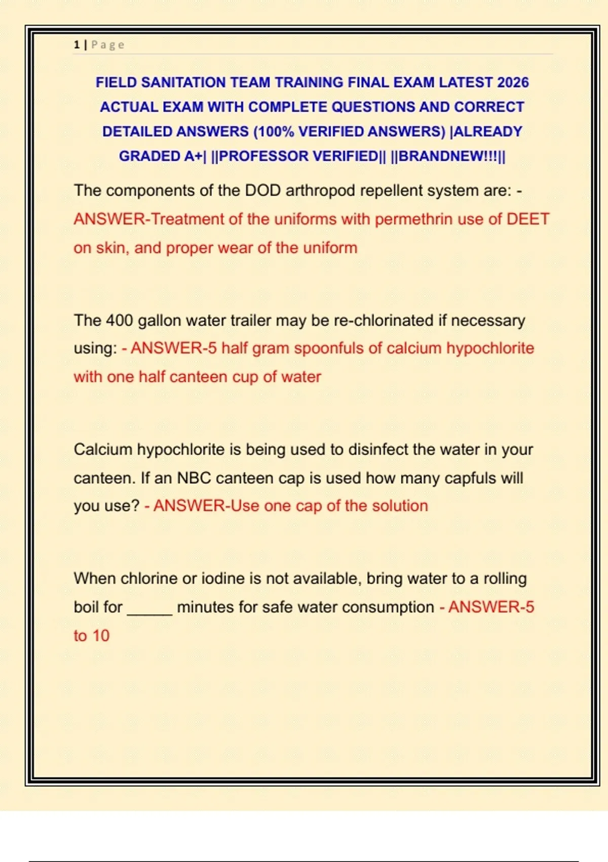 FIELD SANITATION TEAM TRAINING FINAL EXAM LATEST 2026