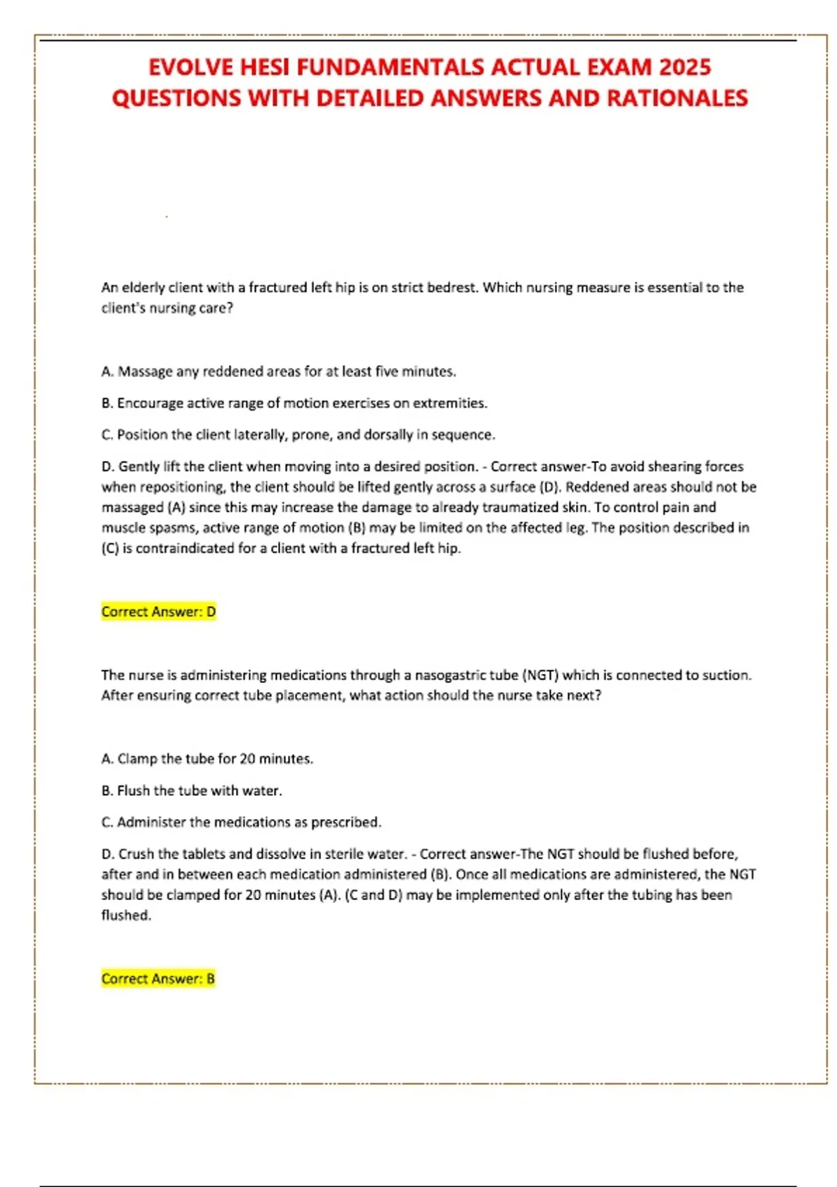 EVOLVE HESI FUNDAMENTALS ACTUAL EXAM 2025 QUESTIONS WITH DETAILED ANSWERS AND RATIONALES