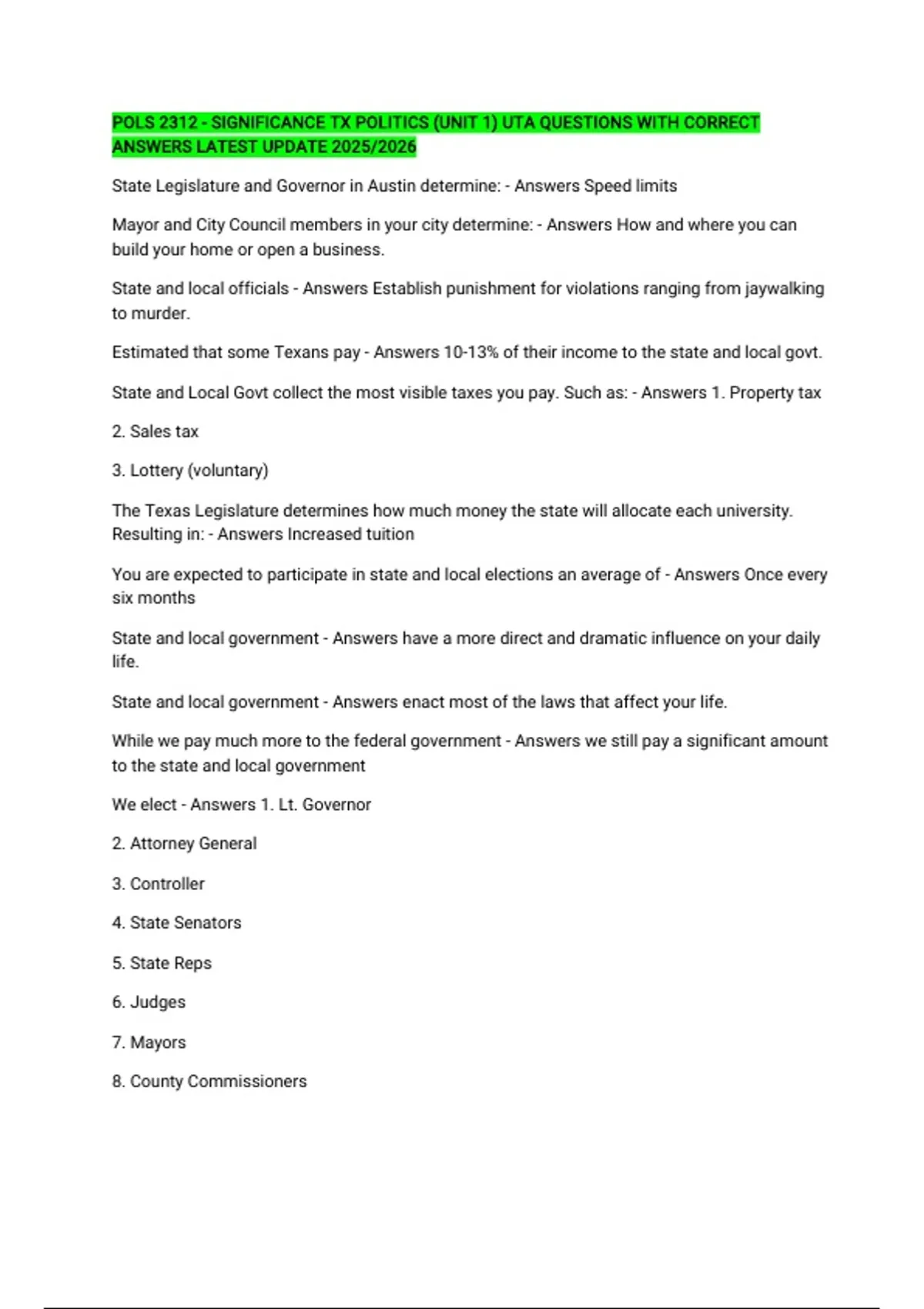 ANSWERS LATEST UPDATE 2025/2026