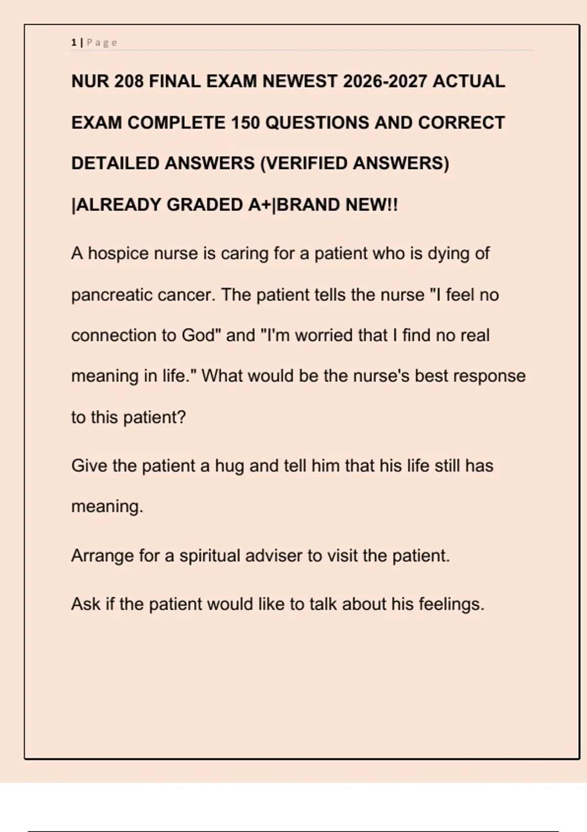 NUR 208 FINAL EXAM NEWEST 2026-2027 ACTUAL