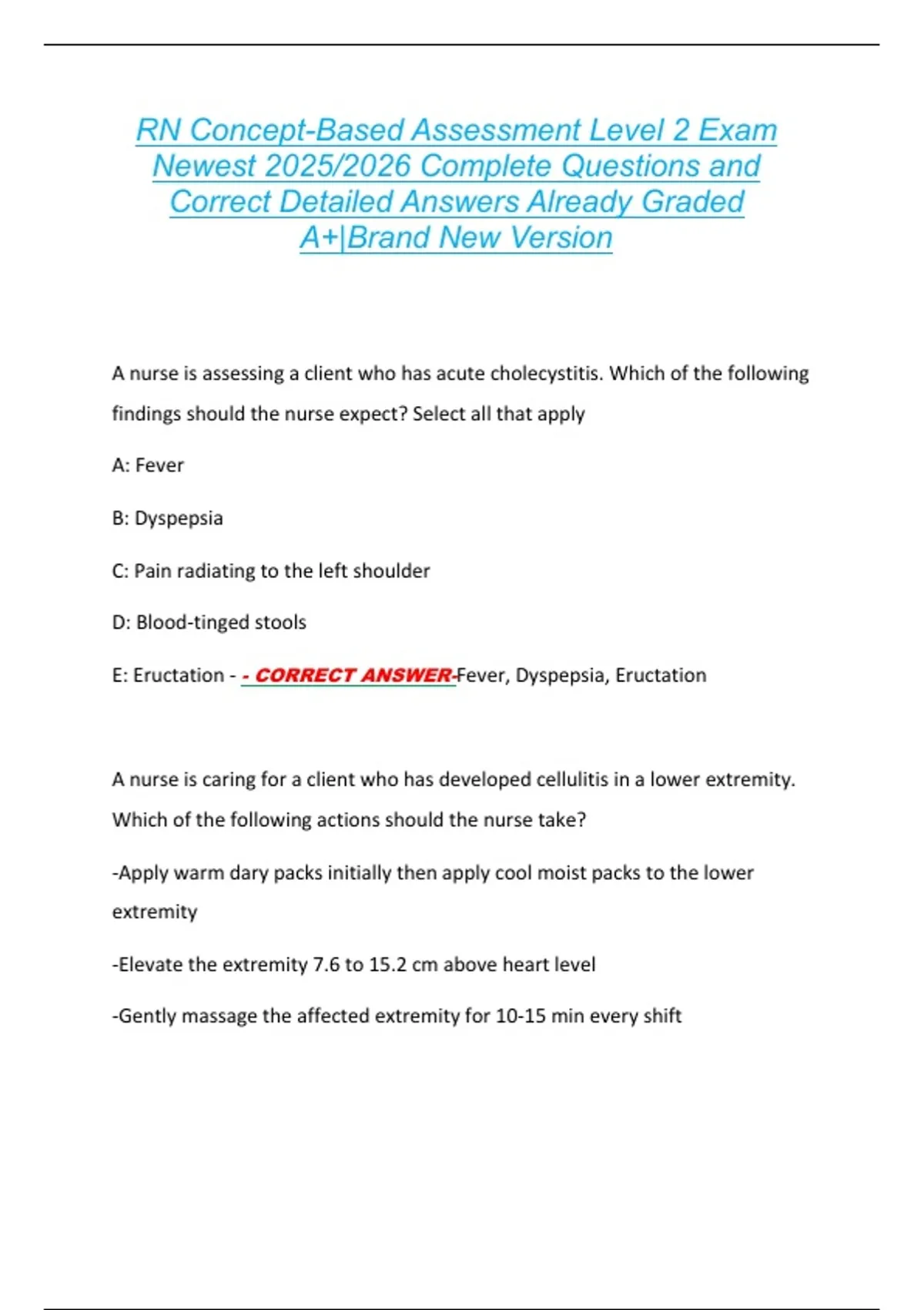 RN Concept-Based Assessment Level 2 Exam Newest 2025/2026 Complete Questions and Correct Detailed Answers Already Graded A+|Brand New Version