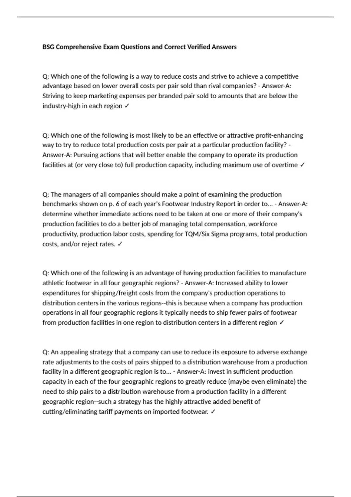 BSG Comprehensive Exam Questions and Correct Verified Answers