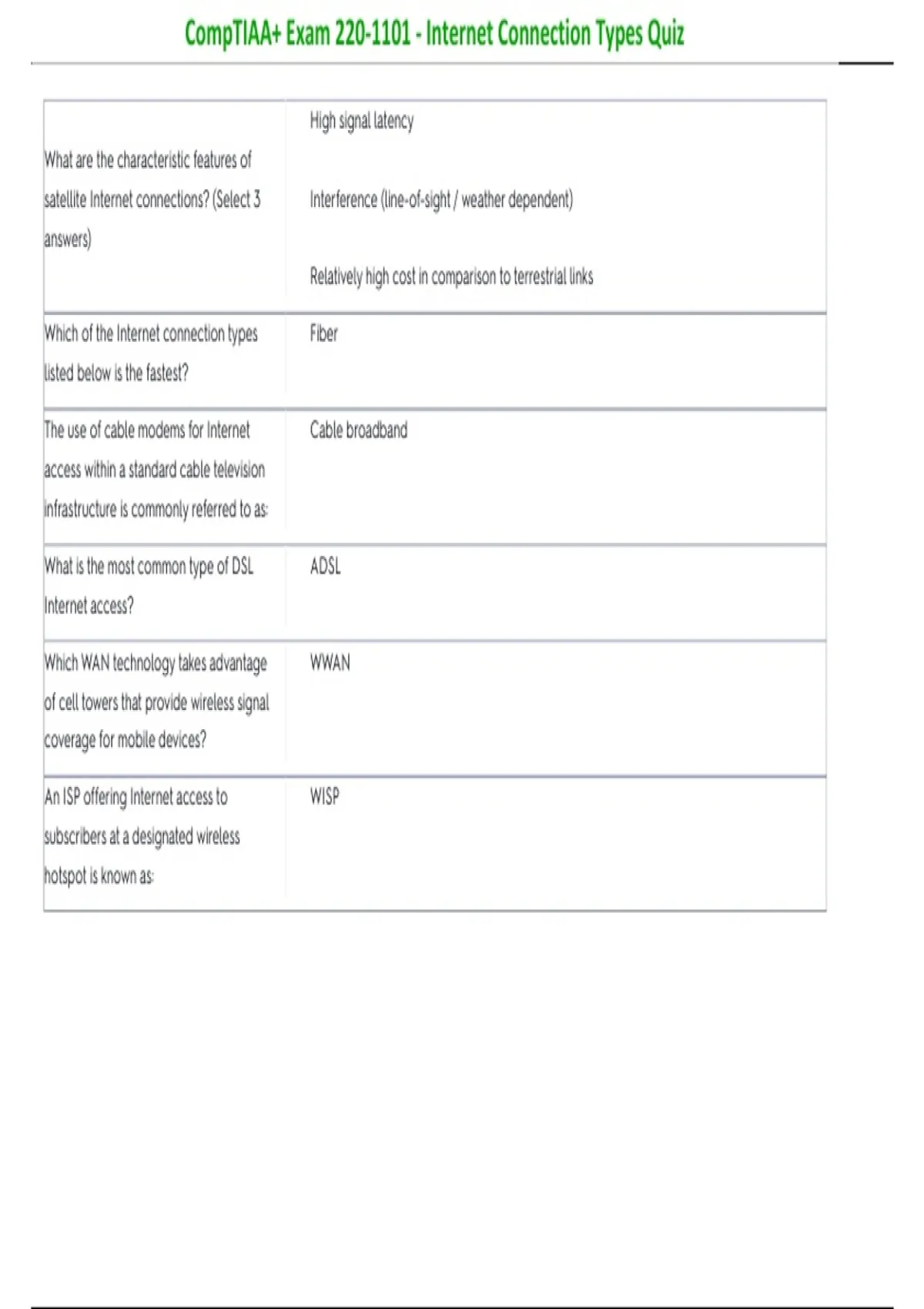 CompTIA A+ Exam 220-1101 Internet Connection Types Quiz Practice Questions with Solution 2025/ 2026 Exam Prep