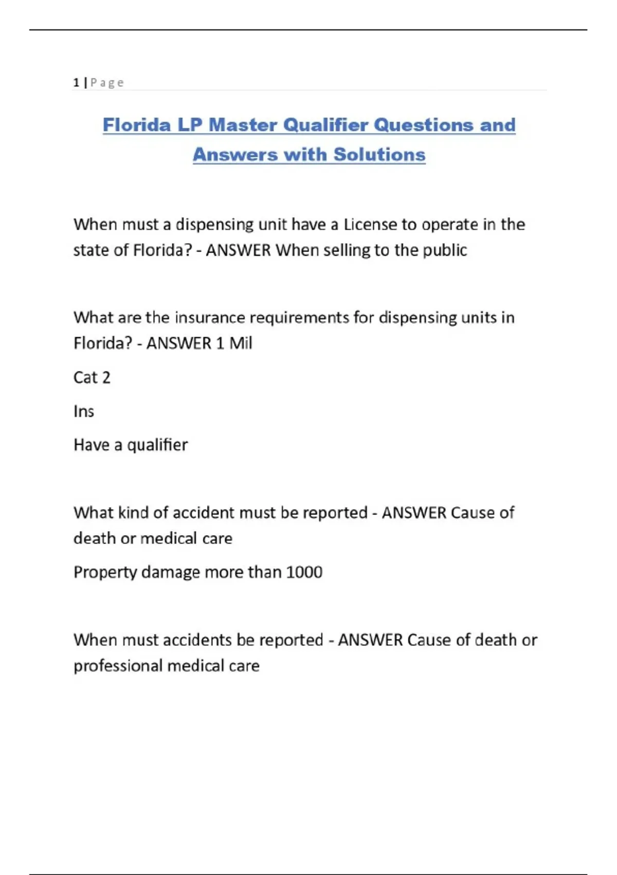 Florida LP Master Qualifier Questions and Answers with Solutions