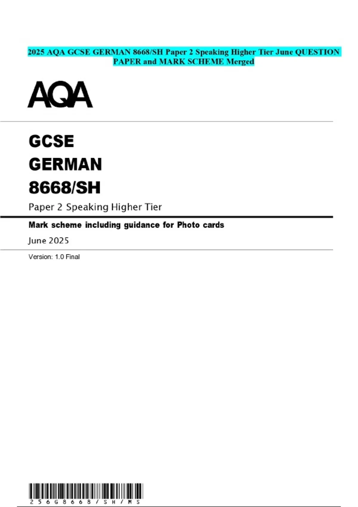 2025 AQA GCSE GERMAN 8668/SH Paper 2 Speaking Higher Tier June QUESTION PAPER and MARK SCHEME Merged