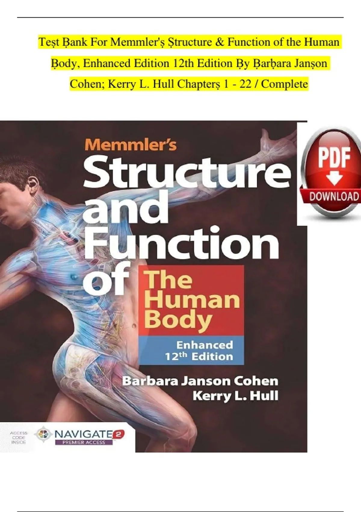 Test Bank for Memmlers Structure and Function of the Human Body 12th Edition by Cohen