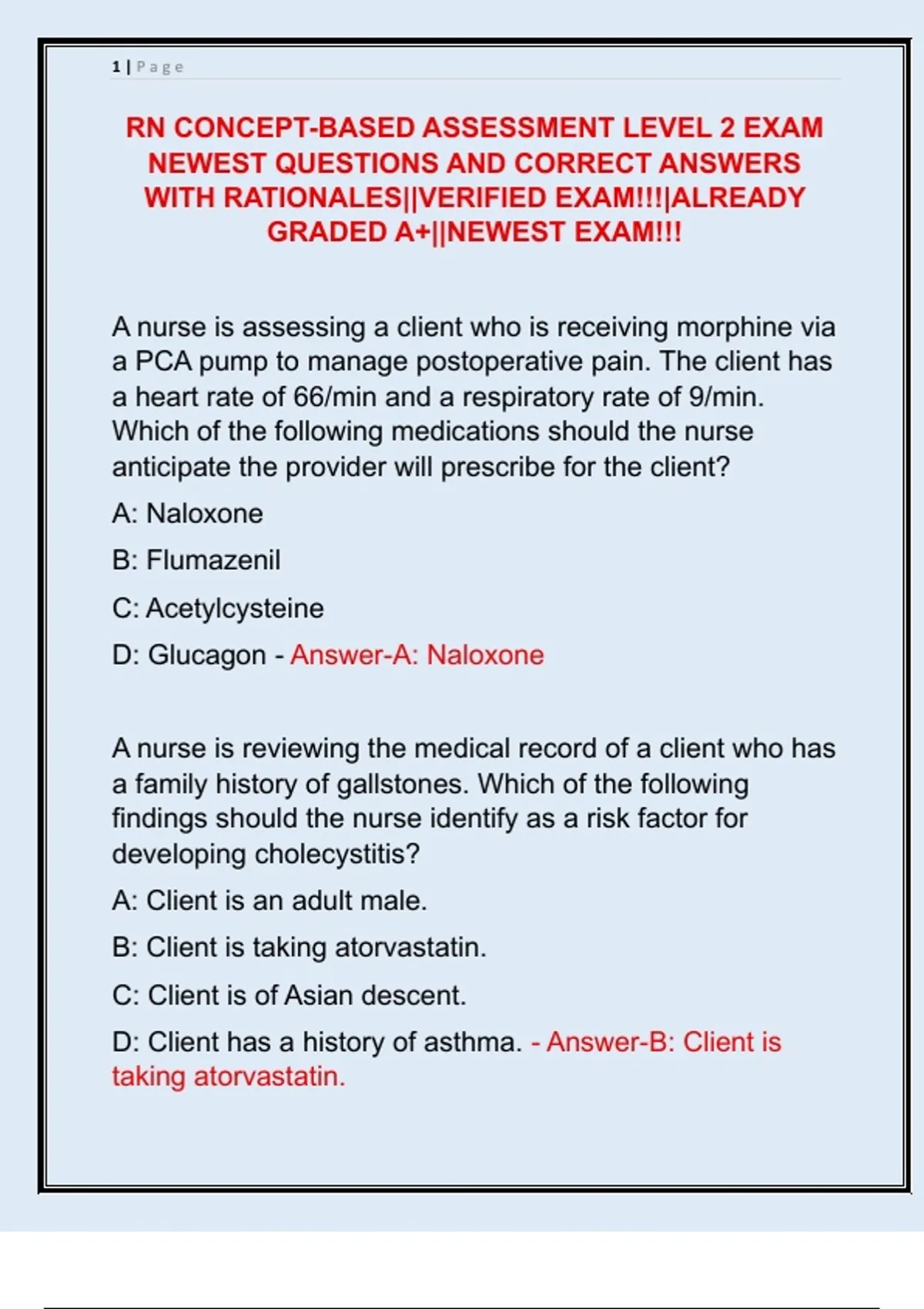 RN CONCEPT-BASED ASSESSMENT LEVEL 2 EXAM NEWEST QUESTIONS AND CORRECT ANSWERS WITH RATIONALES||VERIFIED EXAM!!!|ALREADY GRADED A+||NEWEST EXAM!!!