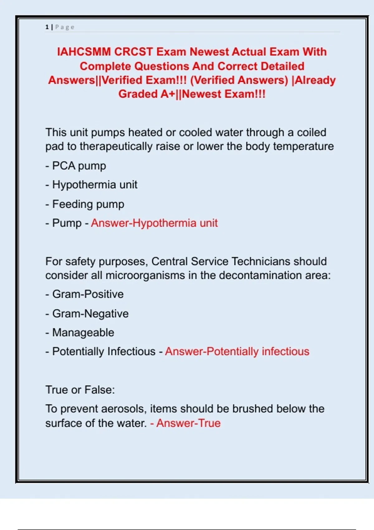 IAHCSMM CRCST Exam Newest Actual Exam With