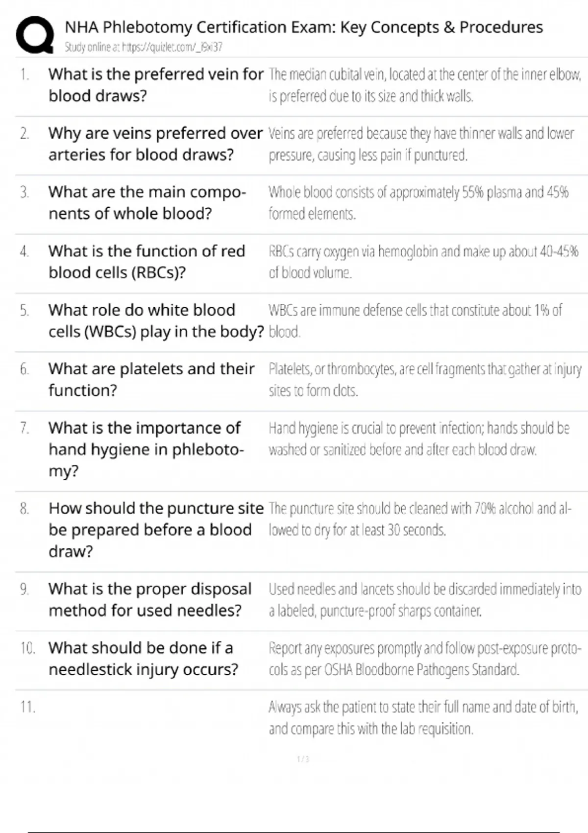 NHA Phlebotomy Certification Exam Key Concepts & Procedures / Score 100% / New 2025 Update / Complete Study Guide