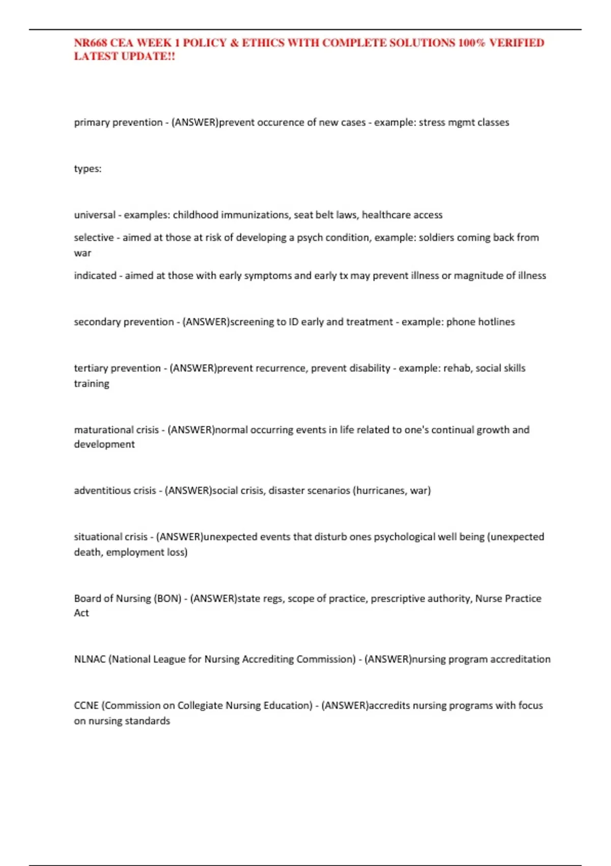 , NR668 CEA WEEK 1 POLICY & ETHICS WITH COMPLETE SOLUTIONS 100% VERIFIED