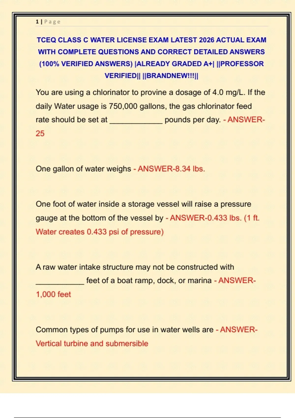 TCEQ CLASS C WATER LICENSE EXAM LATEST 2026 ACTUAL EXAM