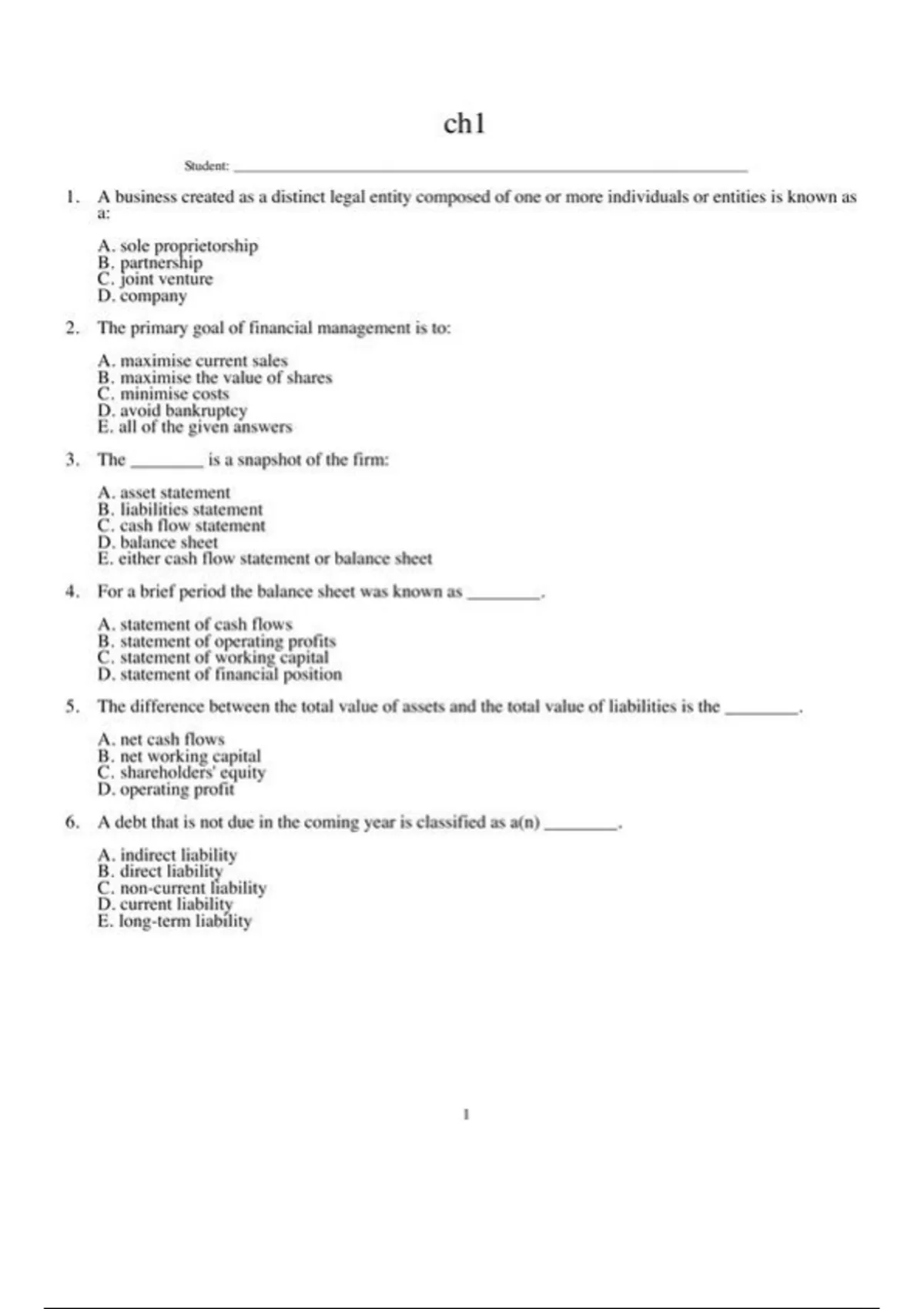 Title: Fundamentals of corporate finance author: 4th ed edition: ross resource: test bank This test bank is specifically designed to help students succeed on exams in Fundamentals of corporate finance. It mirrors the way material is assessed, requiring students to apply concepts accurately under exam conditions rather than rely on surface memorization. Through repeated practice, learners improve timing, precision, and confidence when answering quiz, midterm, and final exam questions. The focused structure helps identify weak areas early, supports efficient revision, and reduces stress before major assessments. Regular use contributes to passing the course and achieving stronger academic results. NOTE: If you are looking for bigger sample, different edition, or another test bank/ solutions manual, just PM me. #examprep #finalexam #coursereview #studyhelp #testpractice