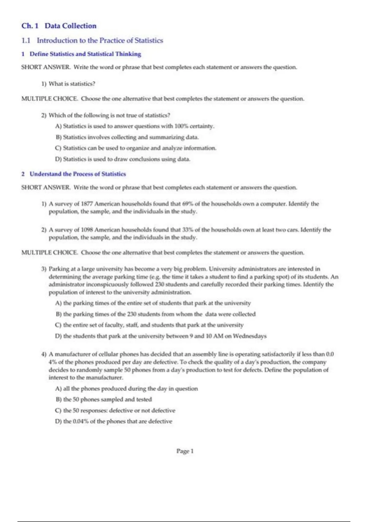 practice test bank questions, final exam : Fundamentals of - Statistics -2e- [ Semester]