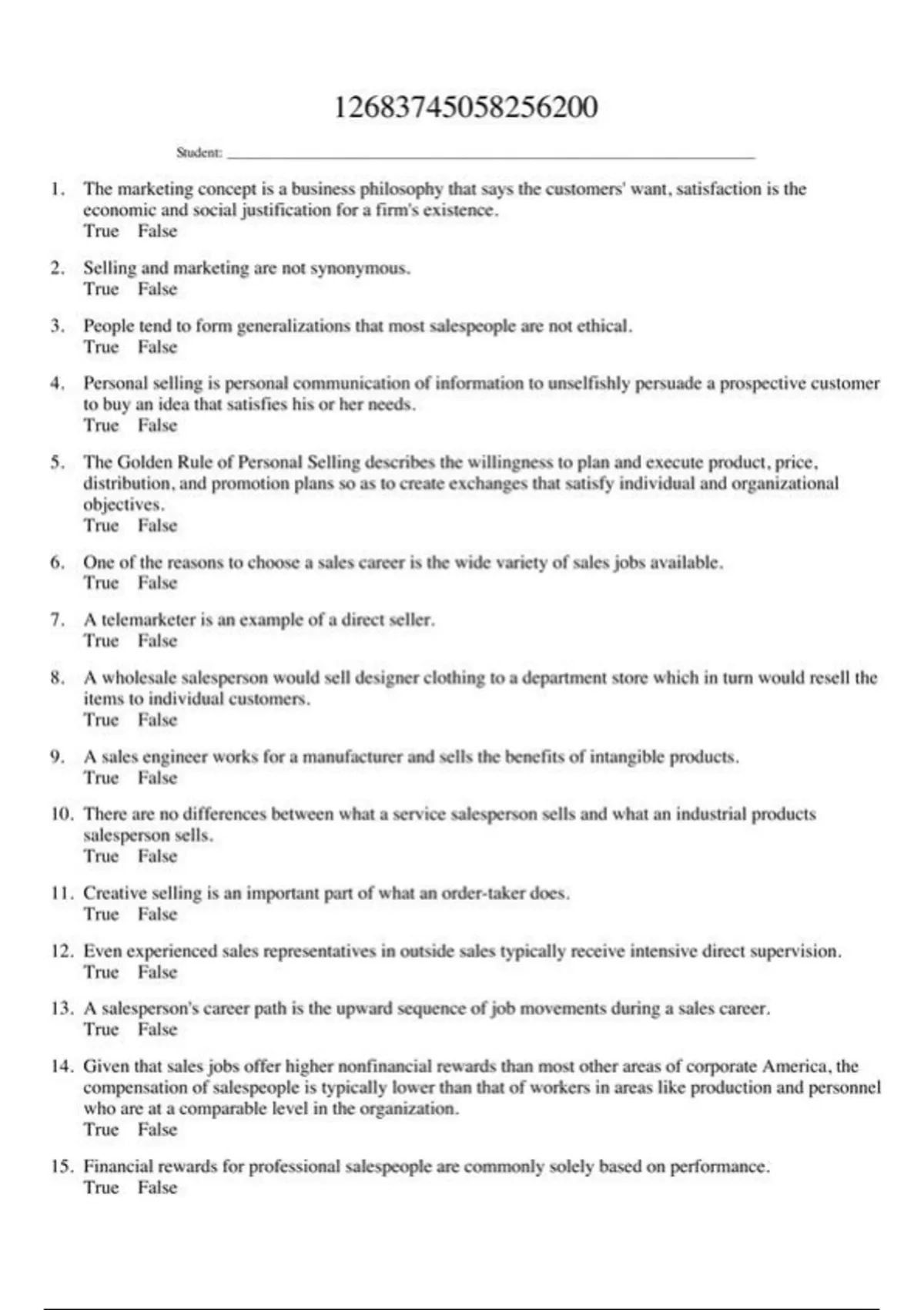 Title: Futrell - ABCs of Relationship Selling through Service - 11e author: edition: N/A resource: test bank This test bank is designed to help students approach exams in Futrell - ABCs of Relationship Selling through Service - 11e with confidence. It focuses on the way instructors evaluate understanding, emphasizing applied reasoning and accurate choices under exam conditions. By practicing structured questions, students strengthen recall, improve time management, and reduce uncertainty during quizzes and final exams. The material reveals weak topics early, supports efficient revision, and lowers exam-related stress. Regular use contributes to passing the course and achieving stronger academic results. NOTE: If you are looking for bigger sample, different edition, or another test bank/ solutions manual, just PM me. #examprep #finalexam #coursereview #studyhelp #testpractice