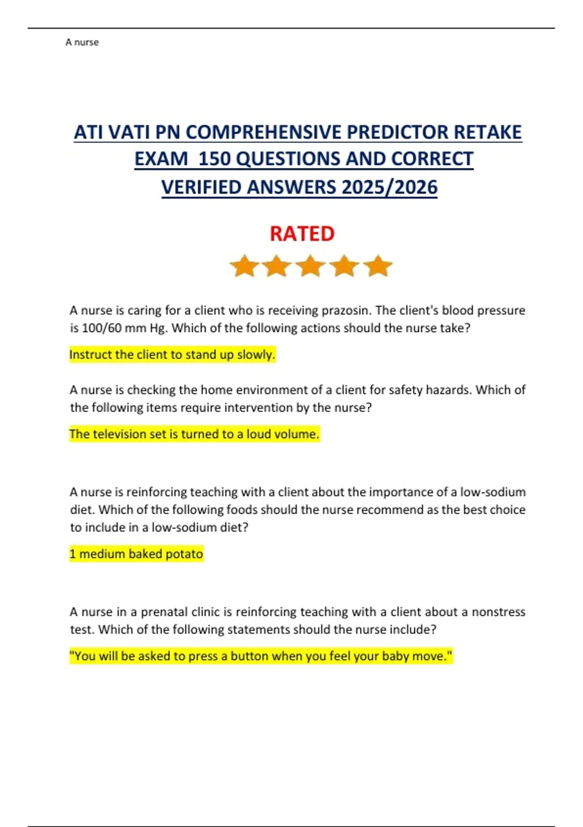 ATI VATI PN COMPREHENSIVE PREDICTOR RETAKE